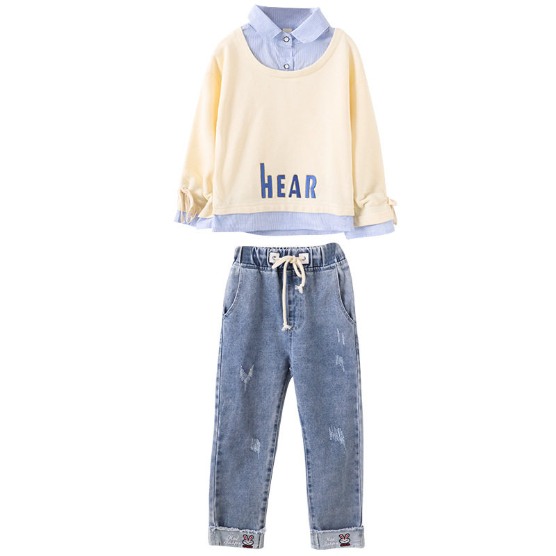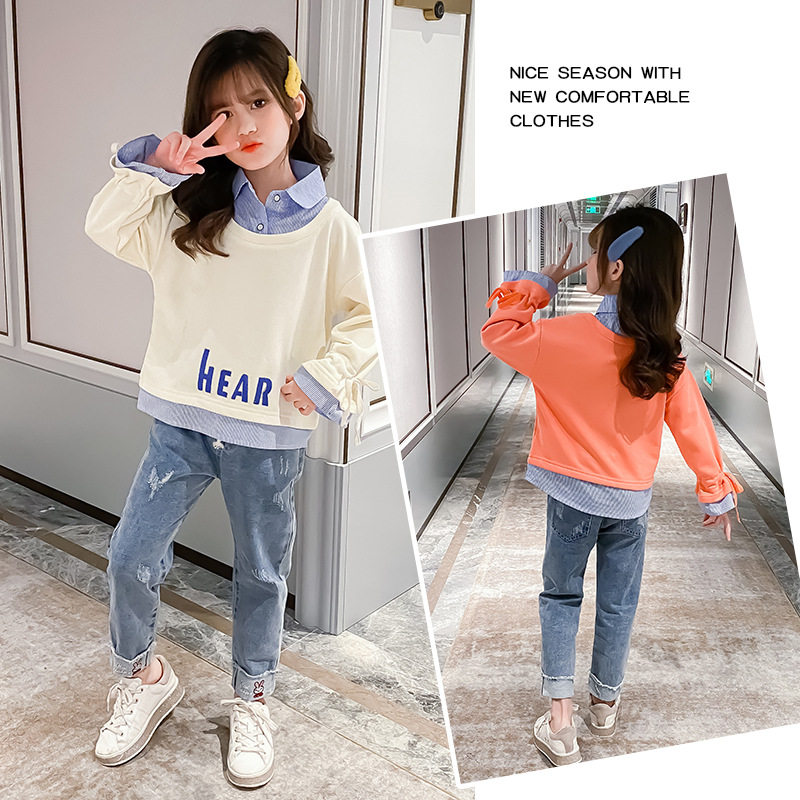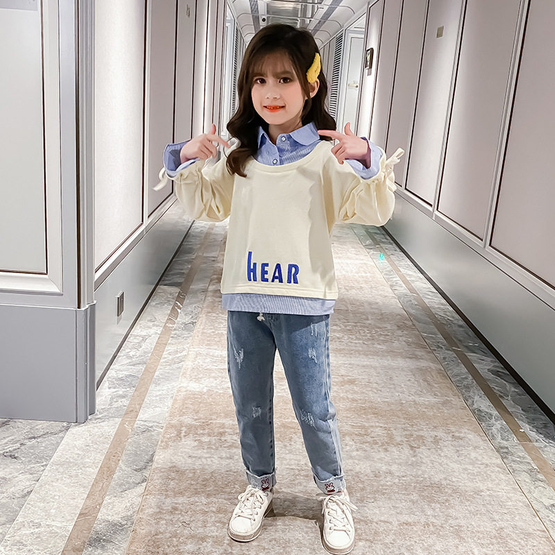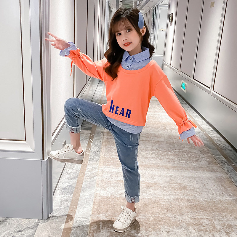 Girls' autumn suit 2022 new Western style middle-aged children's Korean version girl sweatpants thick cotton T net red spring and autumn two-piece set - Taobao