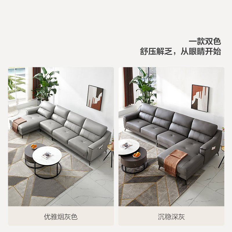 Full Friend Home Modern Light Extravagant Top Layer Cow Leather Real Leather Sofa Living Room Size Family type Composition furniture 102628