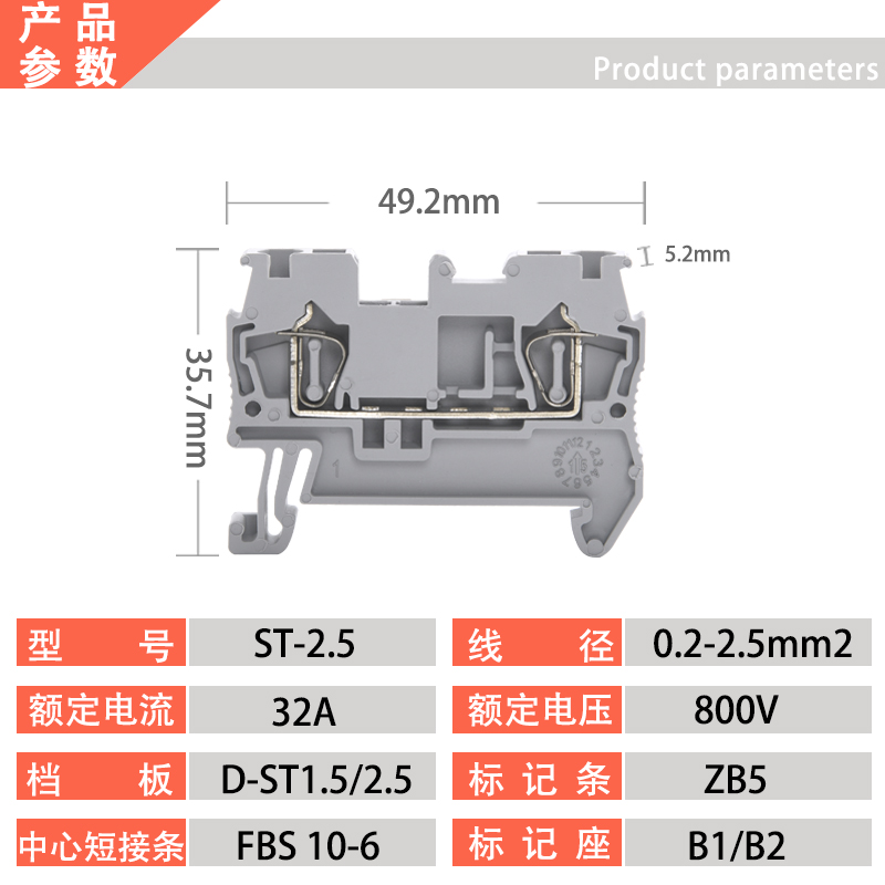 ST2 5 spring terminal block discharge track pure copper flame retardant quick plug UK screw free terminal 100 pieces