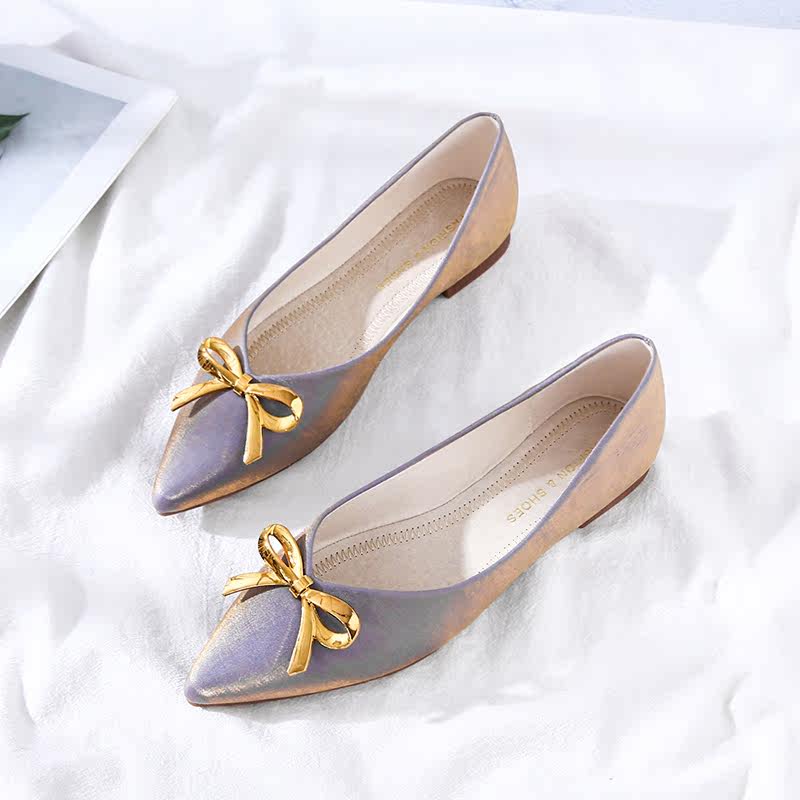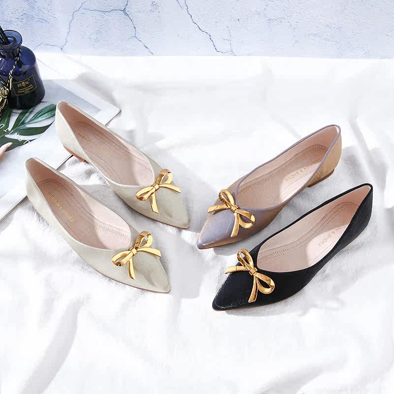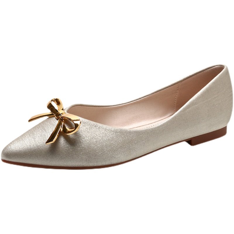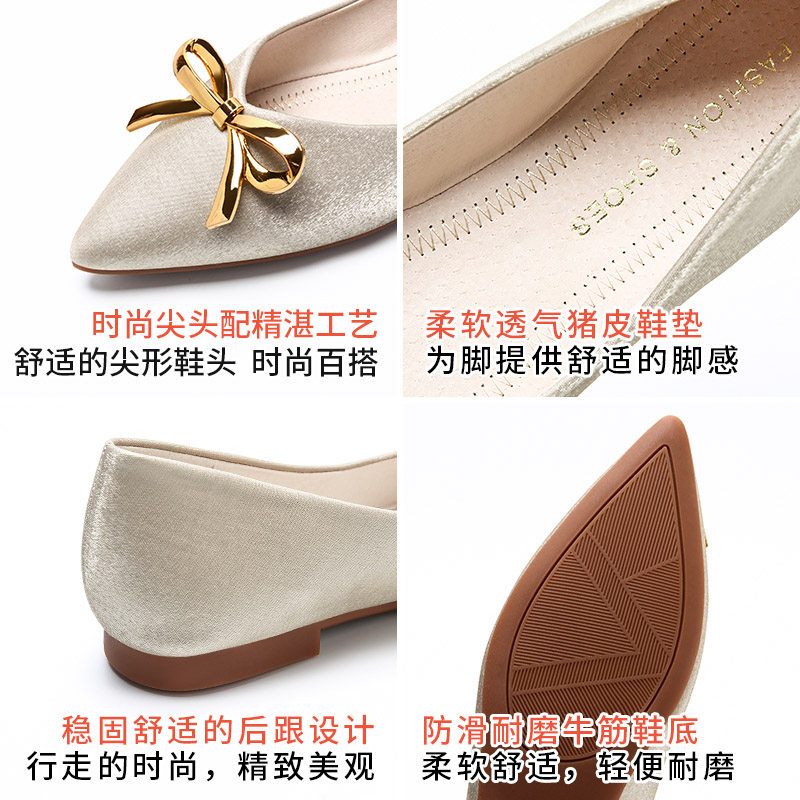 Pointed flat bottom shoes women genuine leather one foot pedal silk satin butterfly knot bridesmaid shoes summer 100 hitch female soft bottom light mouth single shoes