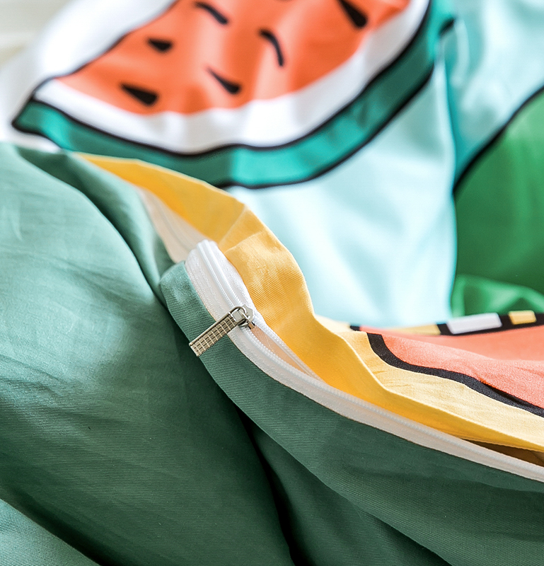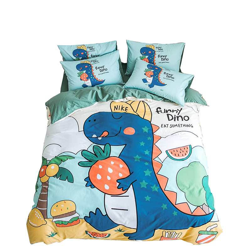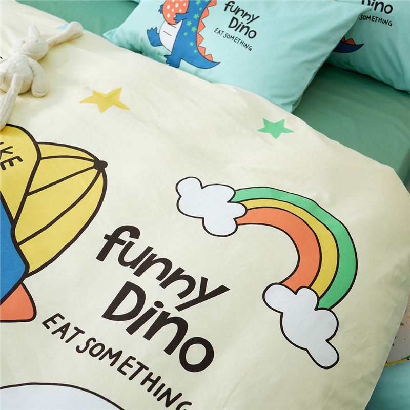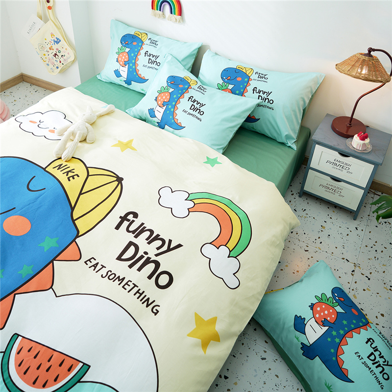ins wind cartoon cotton bed four-piece set 100 cotton summer dormitory bed sheet quilt cover three-piece children's bed cover