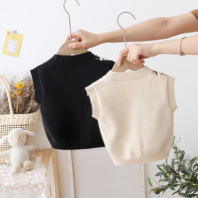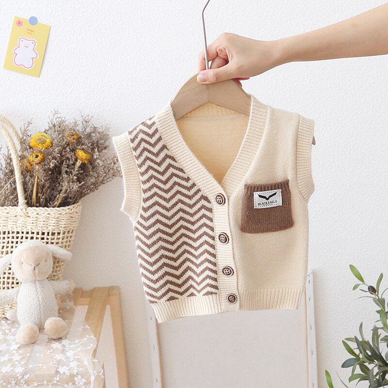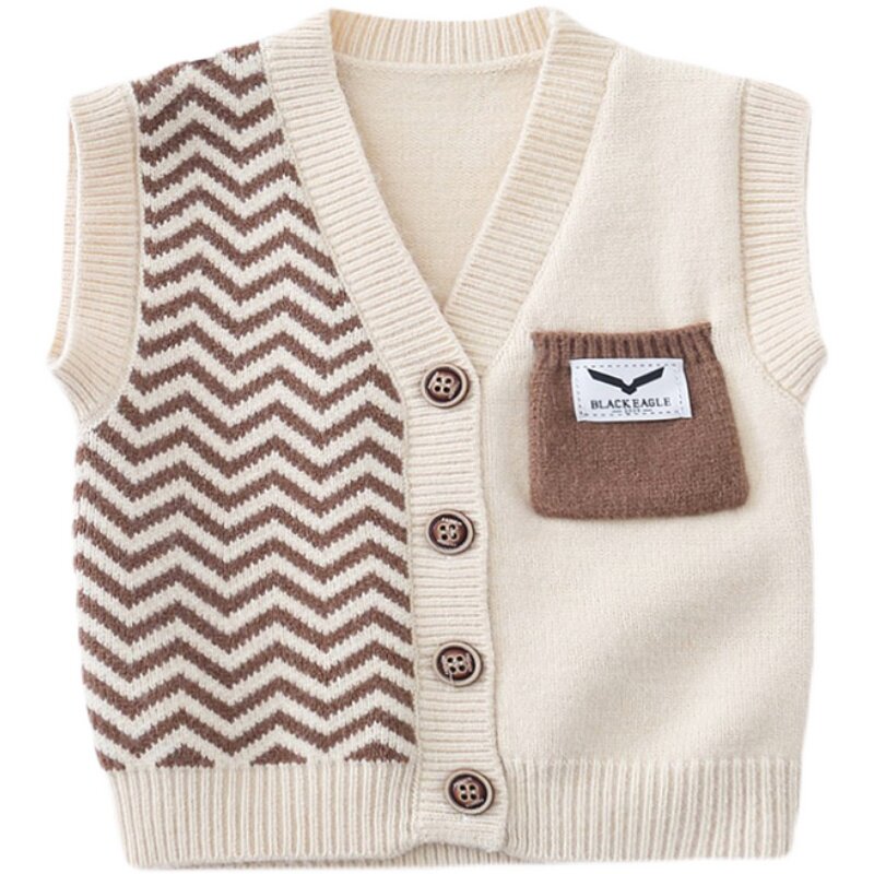 Han's version of the boy's Machia Spring and autumn outside wearing a male baby knit cardio-hoodie sweater with a small vest V collar baby boy