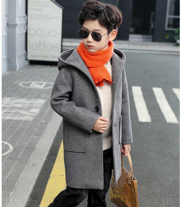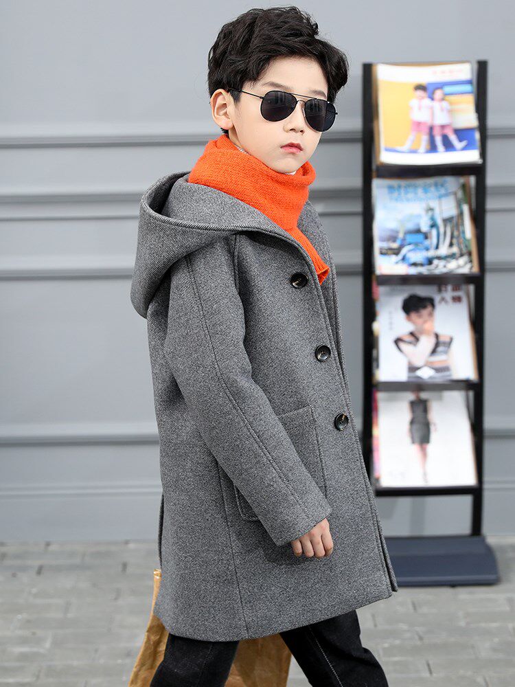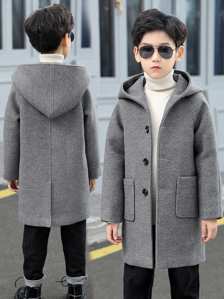 Boy Son Son Coat 2021 New Boy Autumn Winter Cashmere Thickened Jacket CUHK Tong Medium Long Version Korean Version Blouse