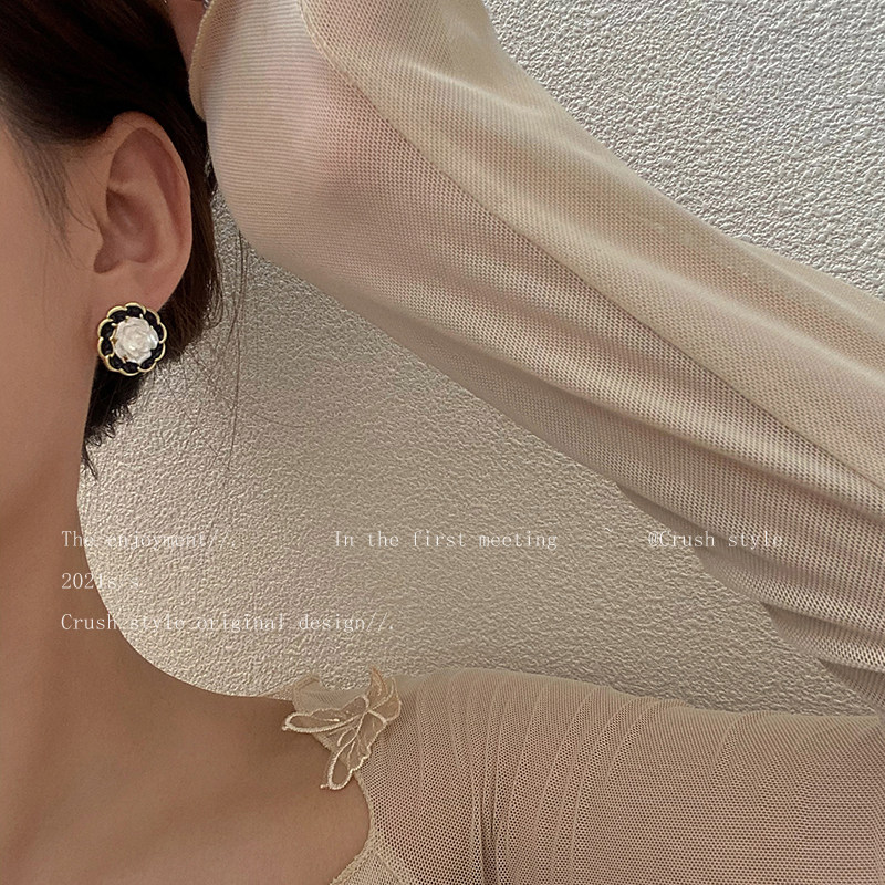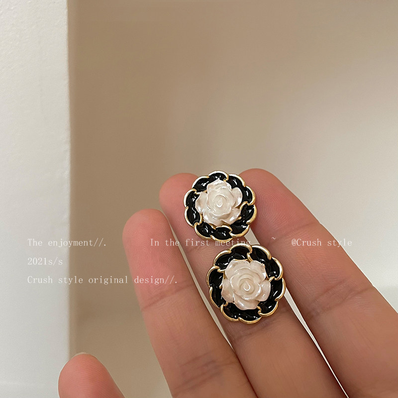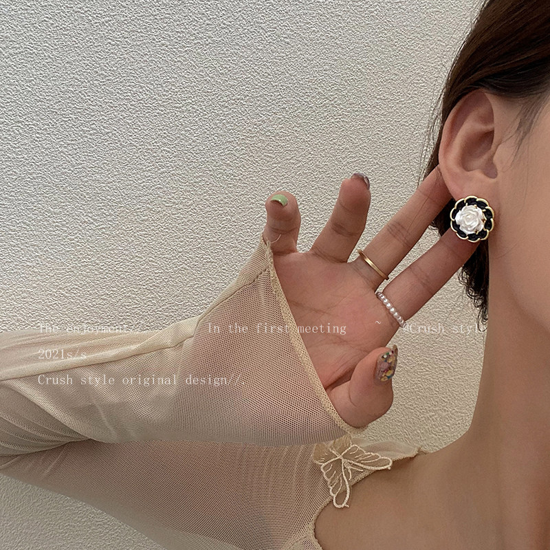 French high-end camellia earrings women's light luxury vintage retro tea ear jewelry niche design earrings