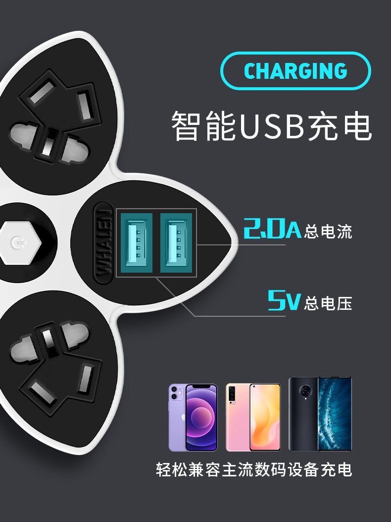 Chiwei socket plug converter porous power plug multi-function extension cable panel wireless plug