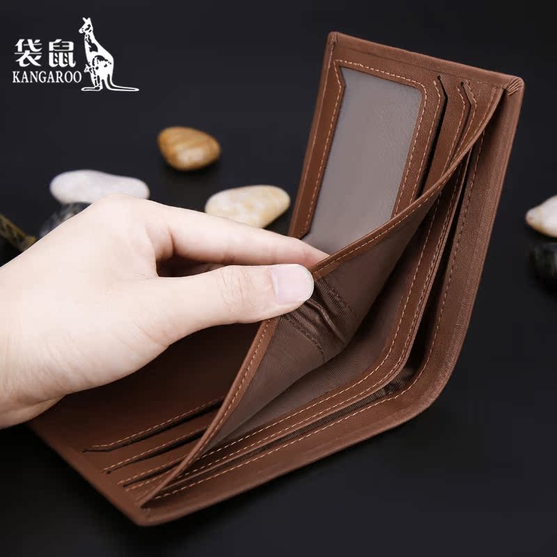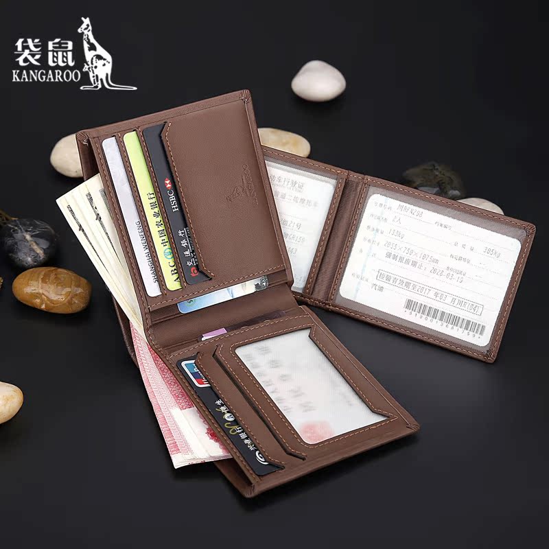 Kangaroo Wallet Men's New Leather Men's Pure Bull Leather Youth Card Bag Money Clip Driving License Clip Business Zero Wallet Man