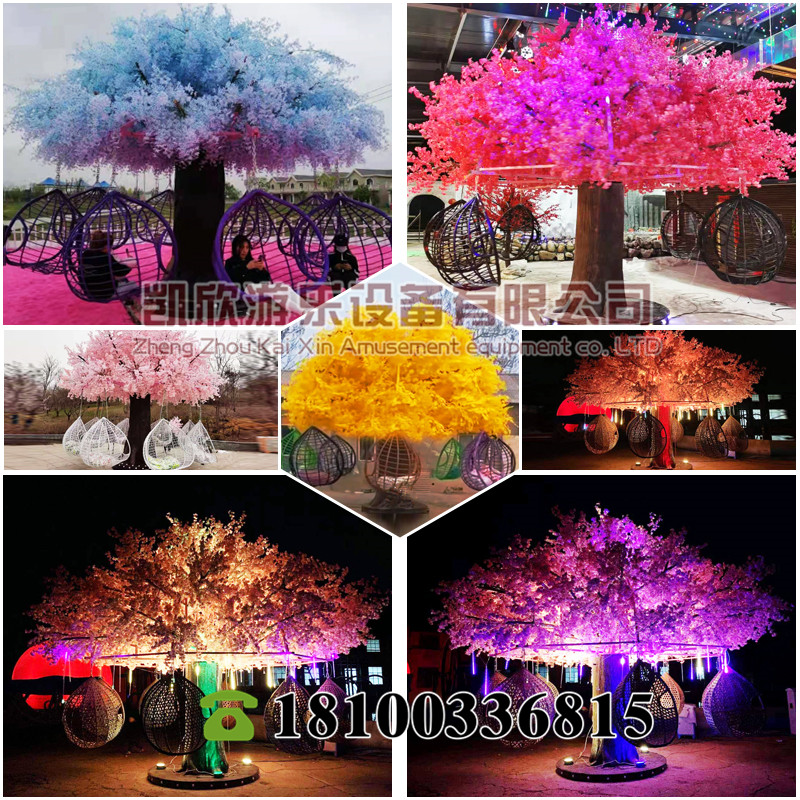 Net Red Light Electric Rotary swing Wish Tree Nacelle BASKET BED EMULATION ROCKING CHERRY BLOSSOM TREES MULTIPERSON AMUSEMENT PARK TREES