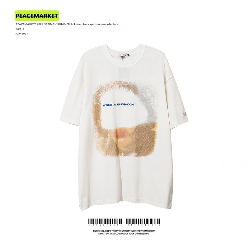 PEACEMARKET vintage portrait print short-sleeved T-shirt loose men and women Yabi style dark hip-hop clothes