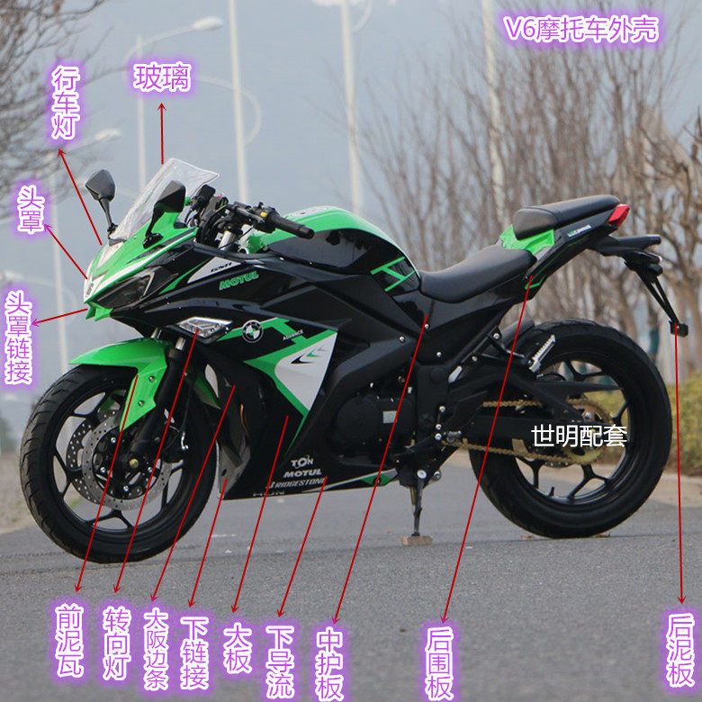 Domestic V6 Motorcycle Shell Bao Ninja 350 New Century Horizon S Guowei Electric Vehicle Full Set