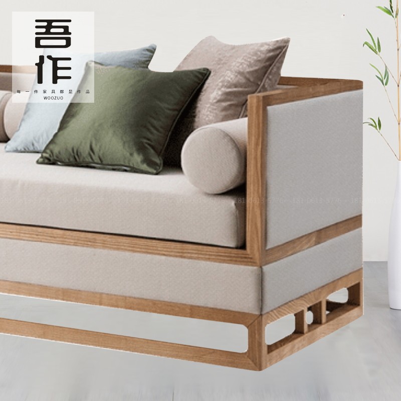 Log color fabric sofa homestay sample house exhibition center club hotel living room modern new Chinese style whole wooden furniture