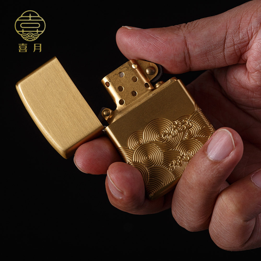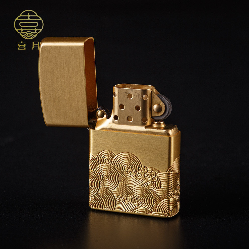 Happy Moon Brass Lighter Kerosene Grinding Wheel Lang Sound Senior Men's Creative Personality Send Boyfriend Husband to make a print