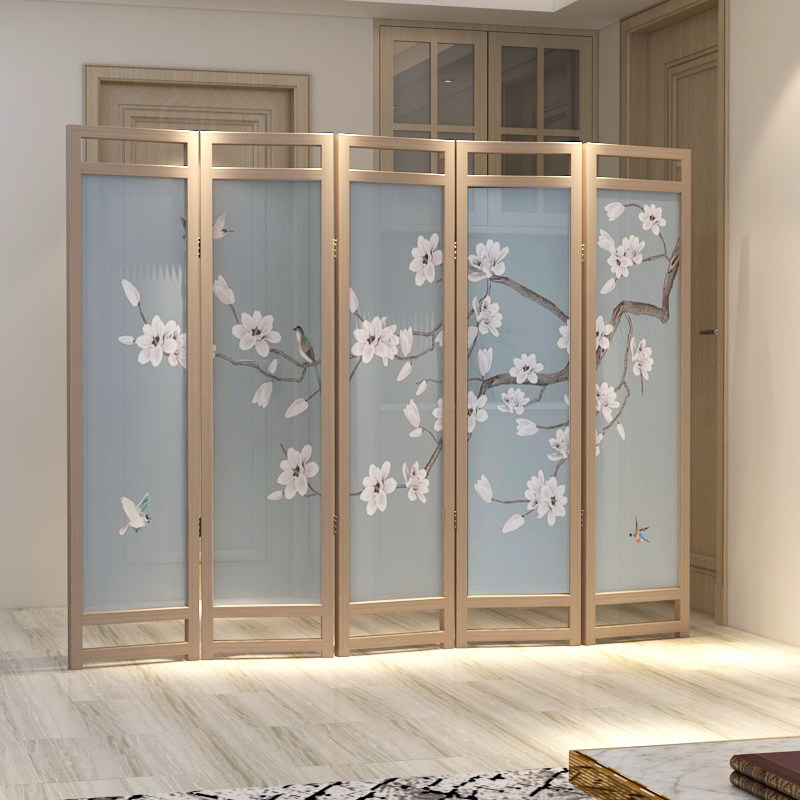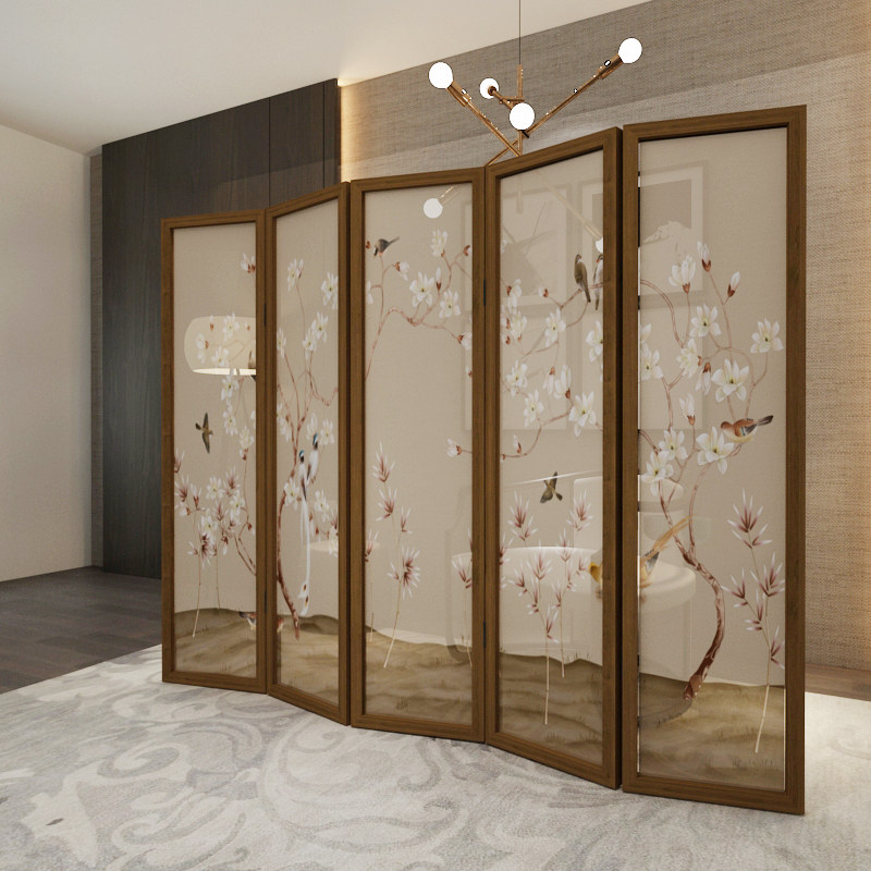 New Chinese screen partition living room bedroom office minimally modern folding mobile solid wood folding screen