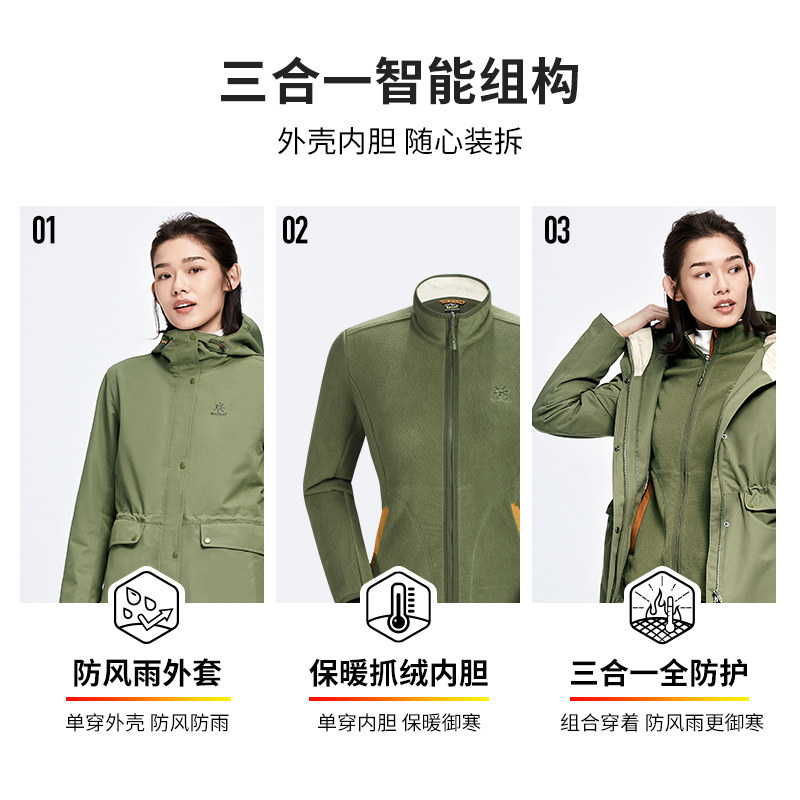 Kele Stone Grip Suede Submachine Clothing Women 20 New Three-in-one Waterproof Submachine Clothing Removable Plus Suede Windproof Jacket