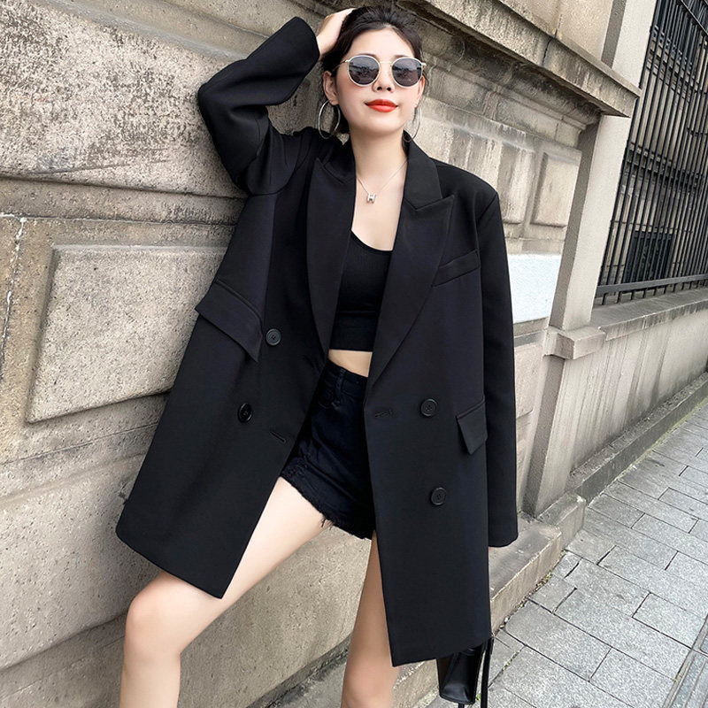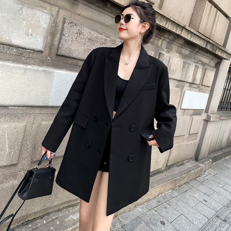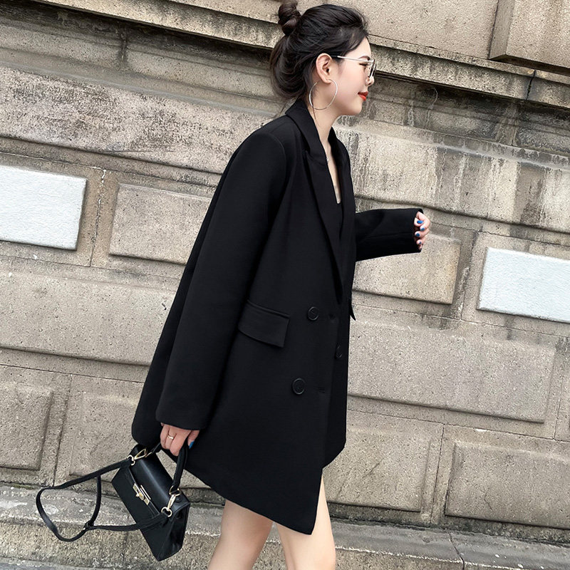 Advanced senses black suit jacket woman medium long version 2022 new spring and autumn season small crowd casual loose Han version Western suit
