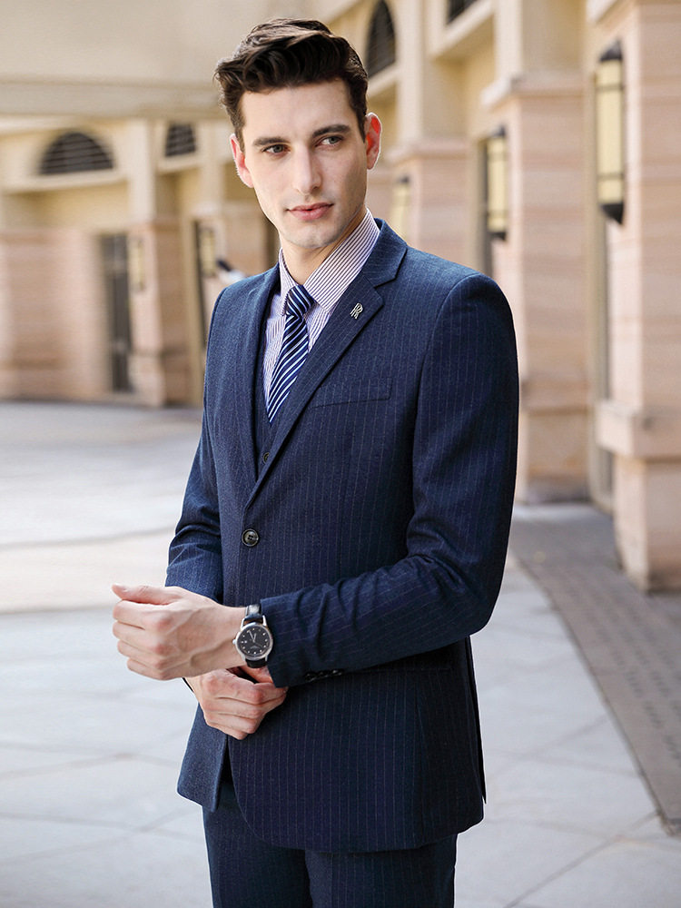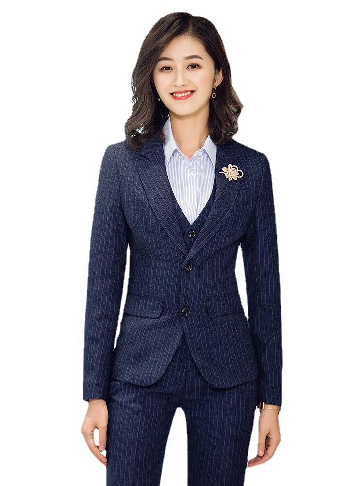 Long-sleeved autumn and winter temperament formal work wear men's and women's same business professional suit custom striped suit three-piece suit