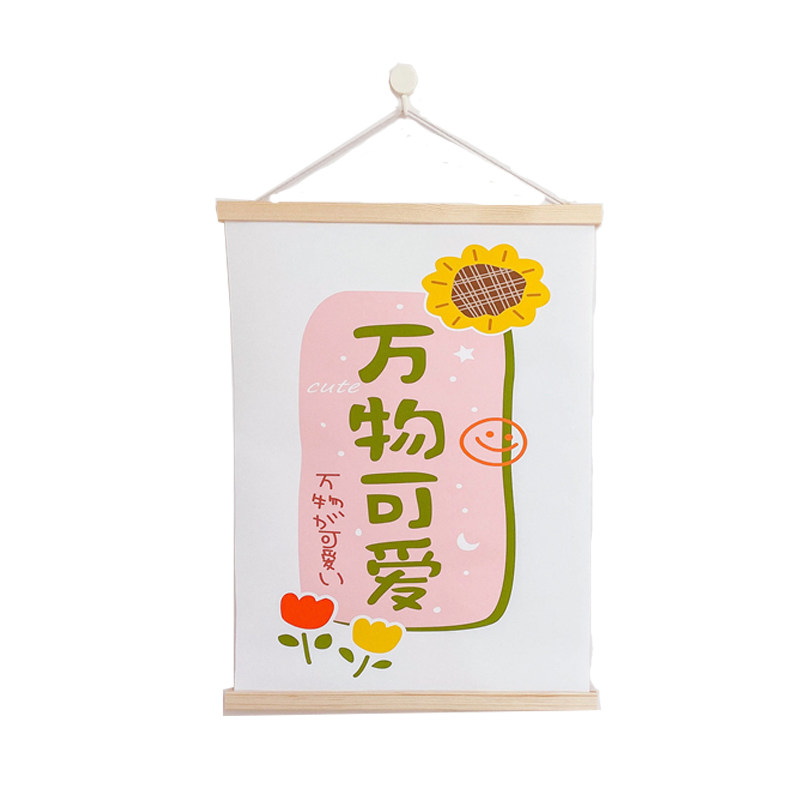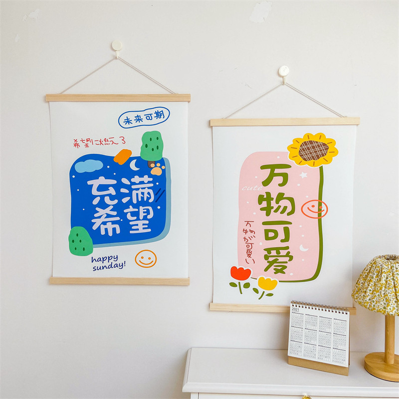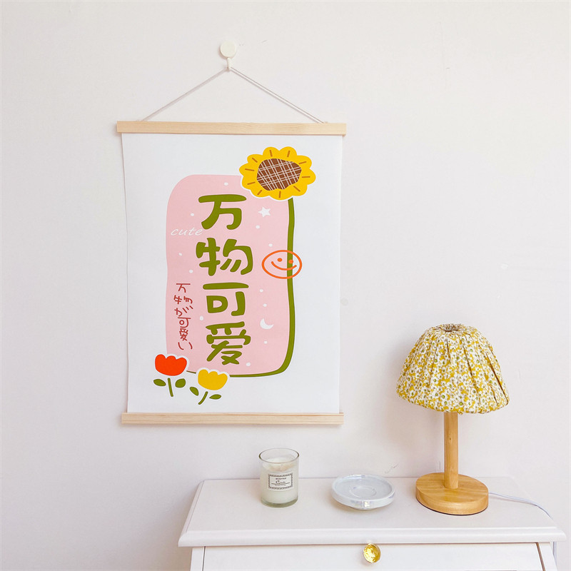 Everything cute and full of hope oil canvas solid wood hanging painting ins bedroom dormitory wall decoration photo background