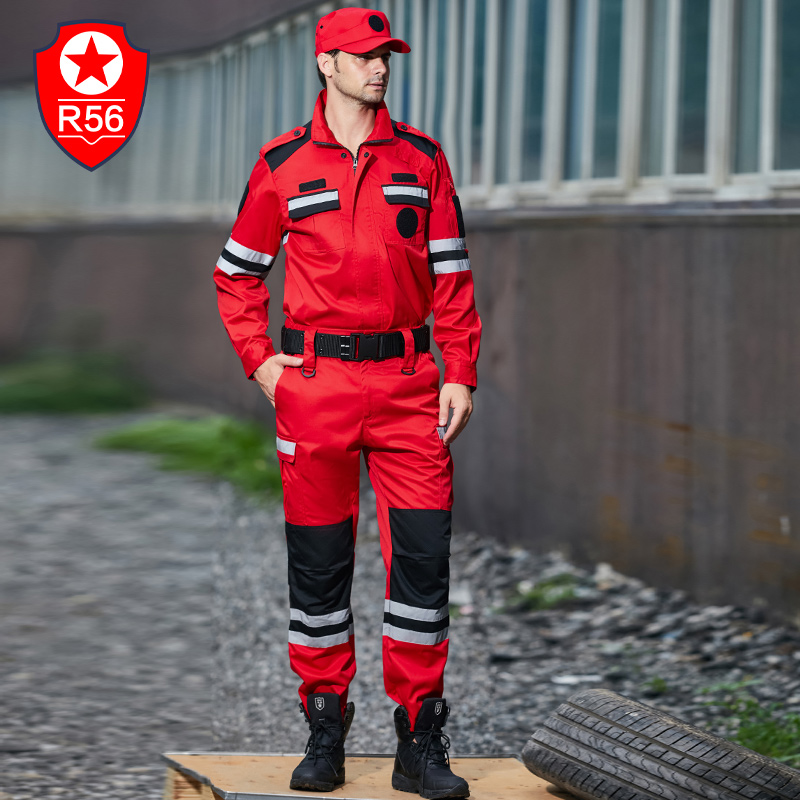 R56 new red emergency rescue service long sleeve antistatic suit outdoor seismic water fire rescue suit