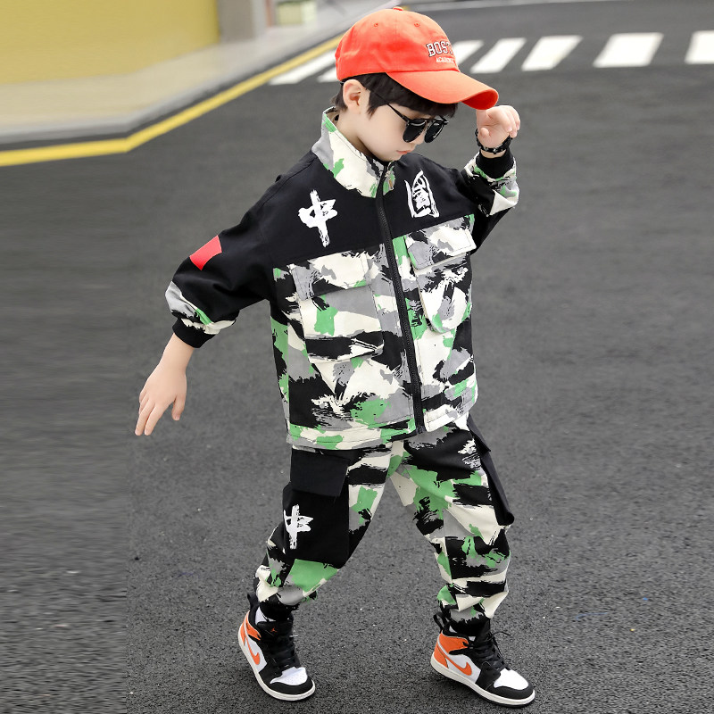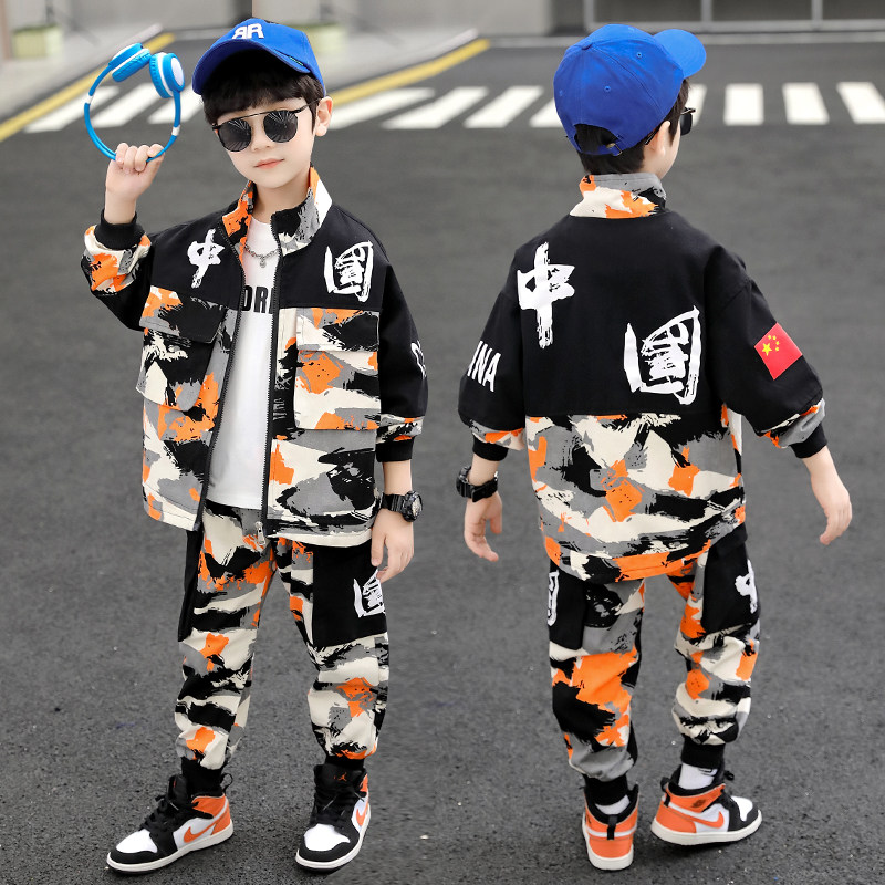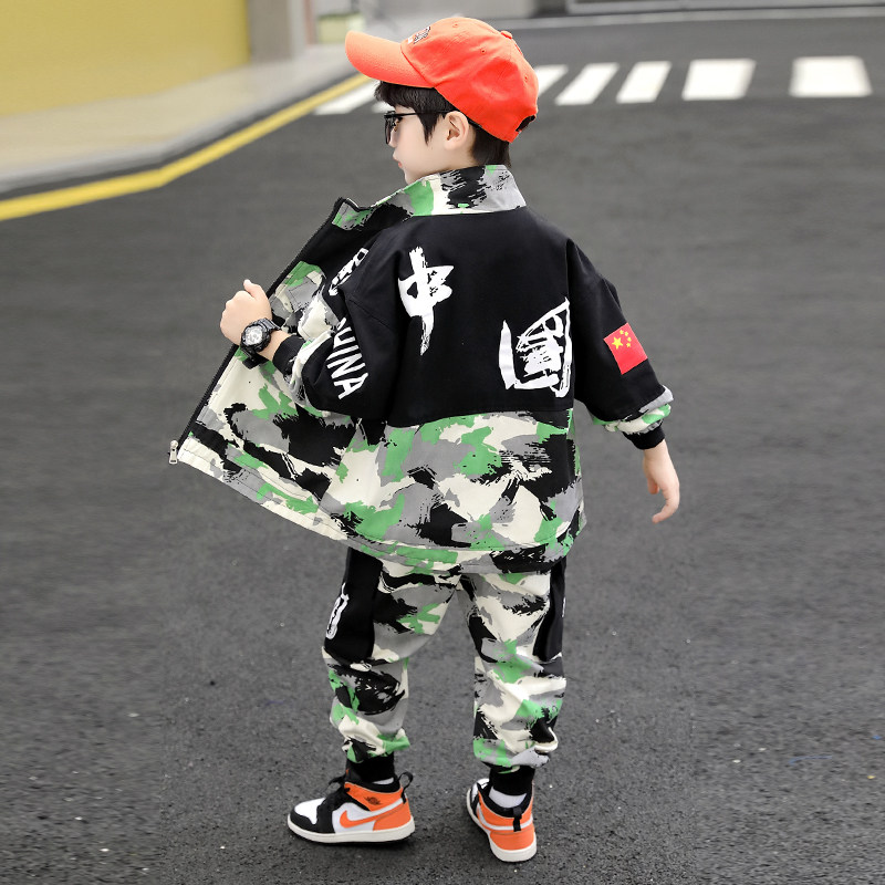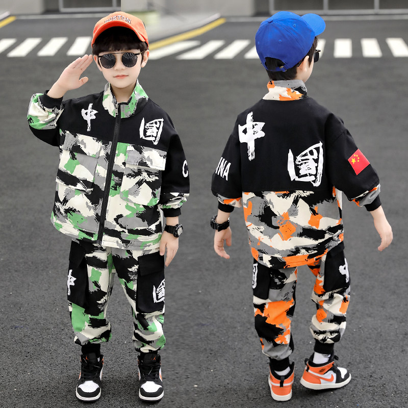 Boy's spring clothing handsome 2022 new children suit boy camouflan two sets of CUHK children sports military training clothes