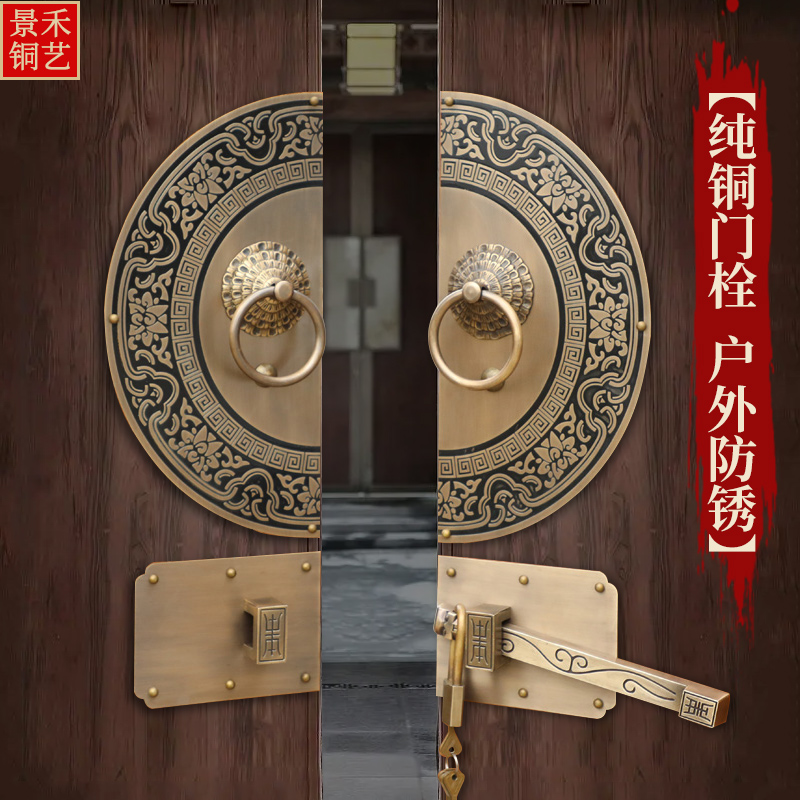 Pure copper door handle style antique tiger head lion head door knocker handle villa old-fashioned door bolt lock buckle pure copper latch