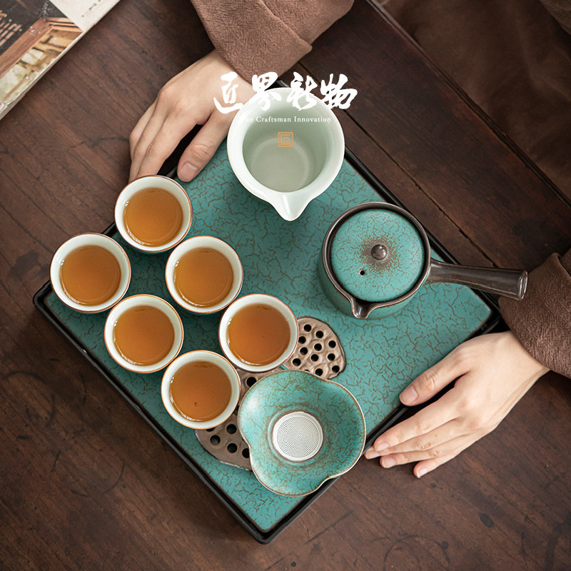 Peacock Green Sky Kettle 9-head Peacock Green Cover Bowl 9-head Peacock Green Side Peacock Green Side 9-head Peacock Green Cover Bowl _ Quadrill (Gift Box) Peacock Green Side 9 Heads _ Quadri Plate (Gift Box)