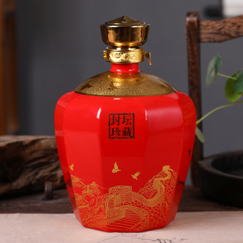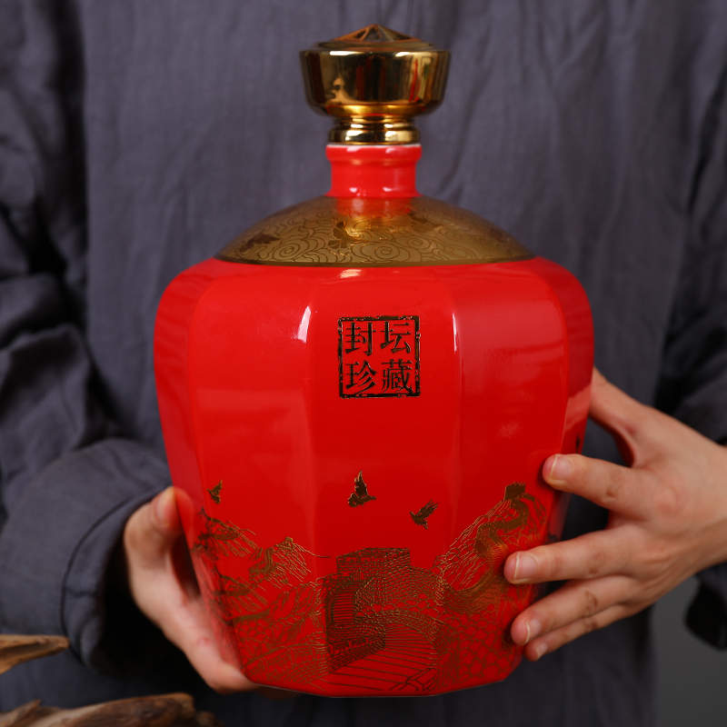 5 catties ceramic liquor bottle home single bottle gift jug sealed with lock wine jar wine jar set Jingdezhen