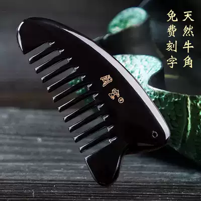 Natural horn comb head scalp Meridian comb massage comb curly hair big tooth comb whole body General scraping gift carving