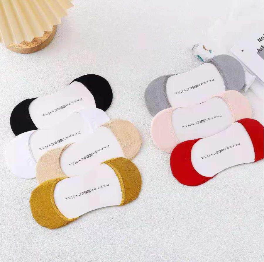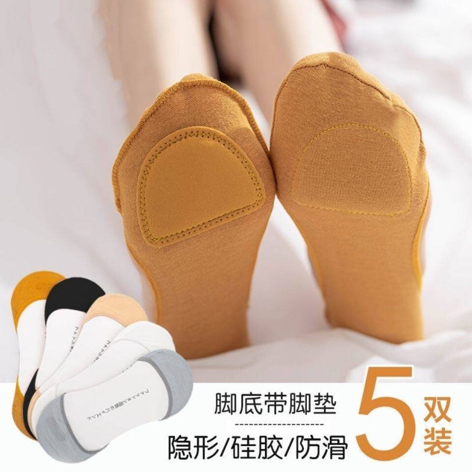 5 Double shallow mouth Boat Sox women No sides High heels Shoes Invisible Socks Summer Pure Cotton Silicone Anti Slip Short Socks Suction sweat