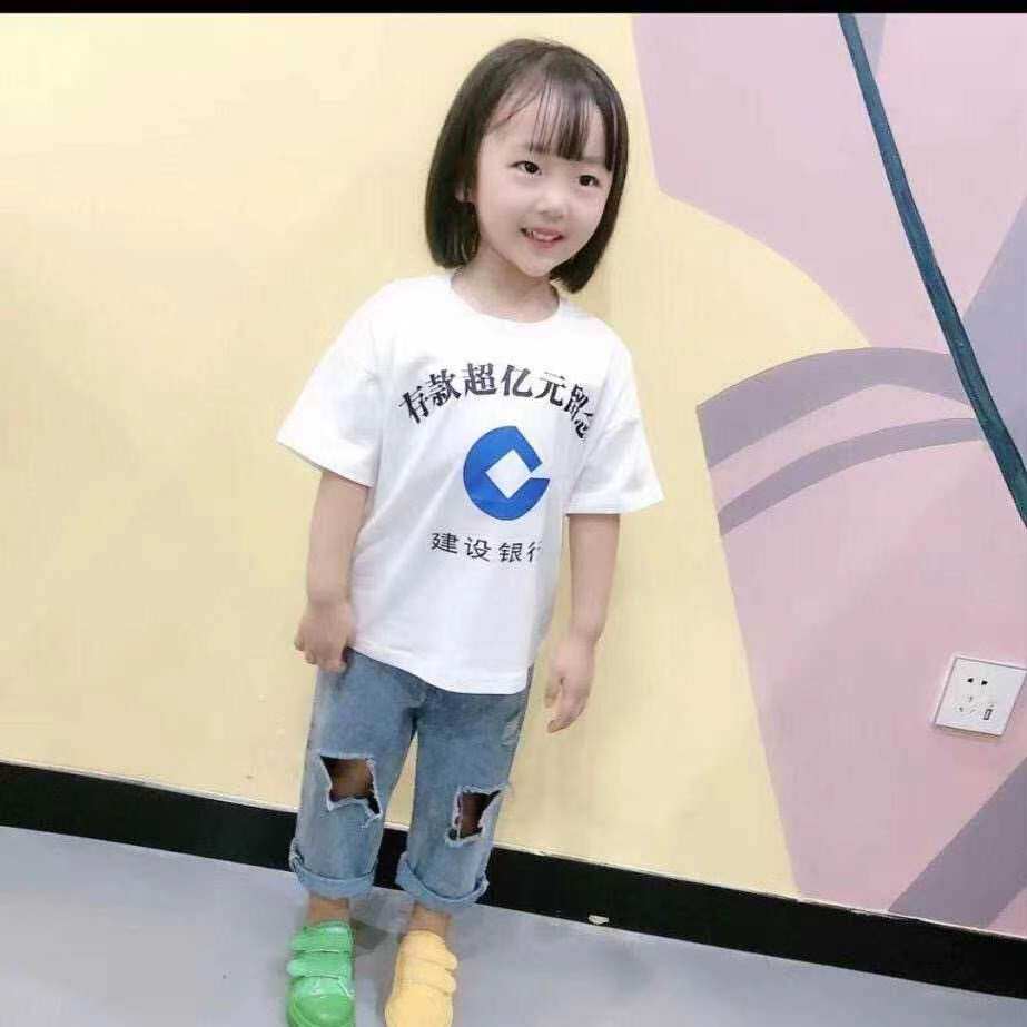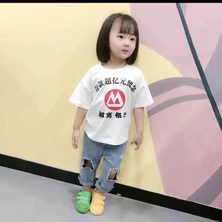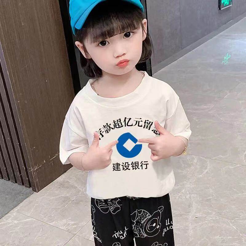 China Merchants Bank T-shirt deposits over 100 million souvenir clothes children over 100 million children's summer clothes boys brothers, sisters and brothers