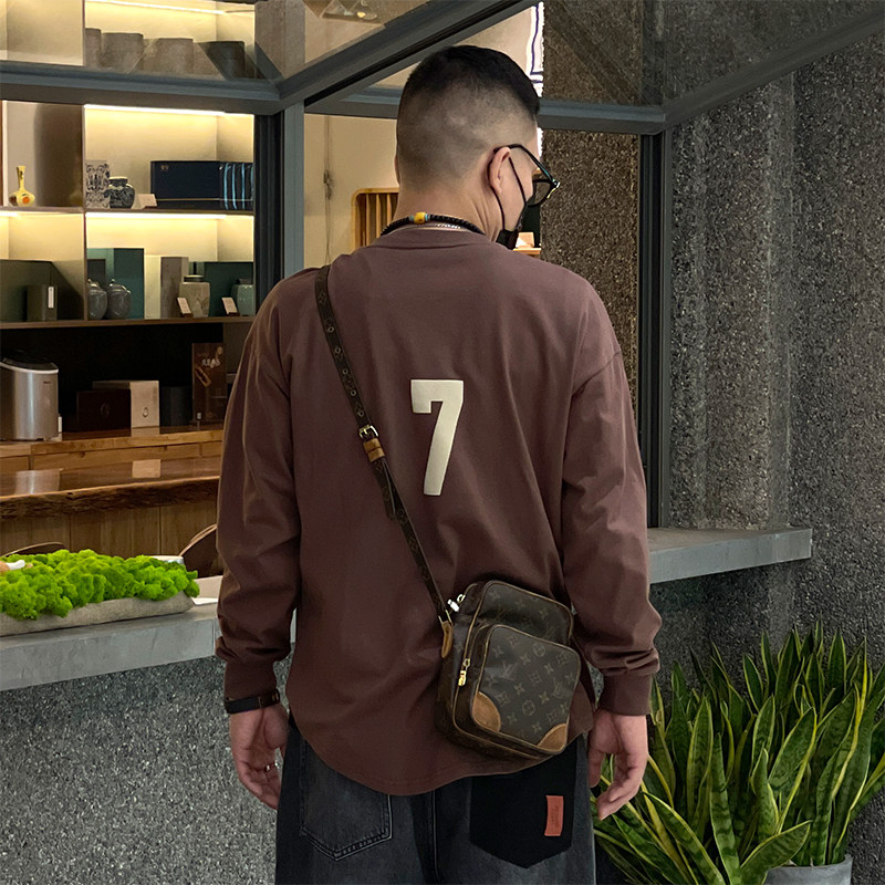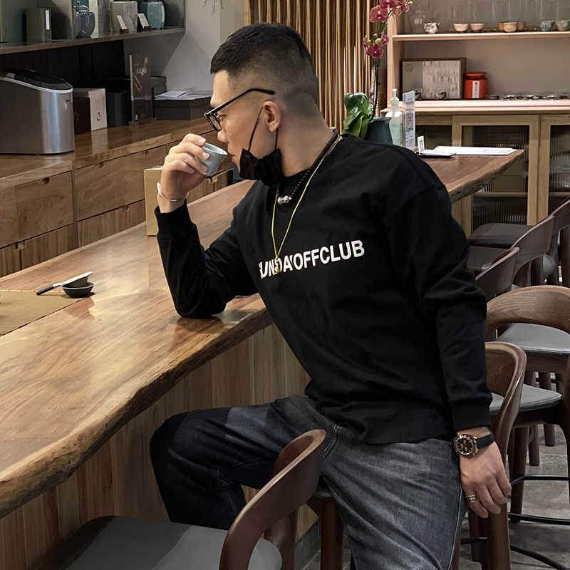Fall Trend Retro Arc Bottom Long Sleeve Beat Undershirt Men's Day High Street Foaming Printed Loose Round Collar T-shirt-Taobao
