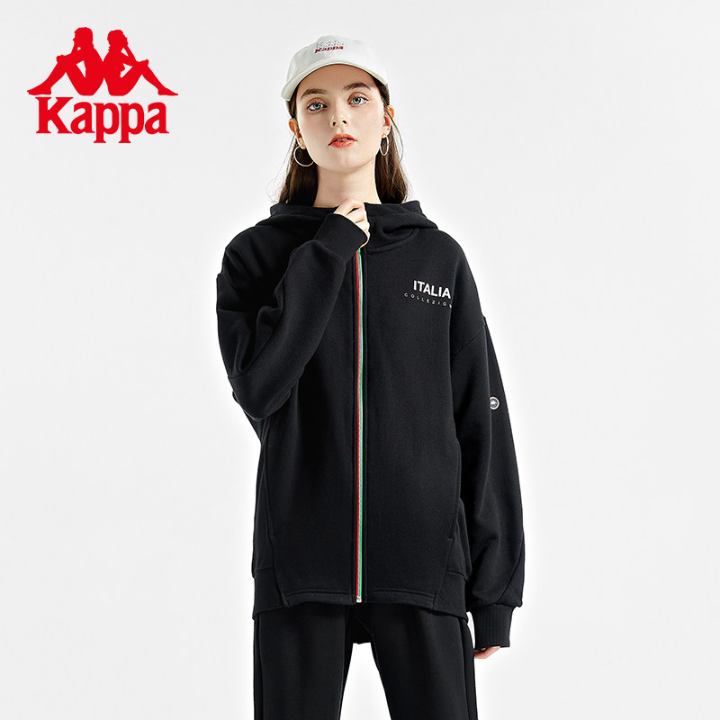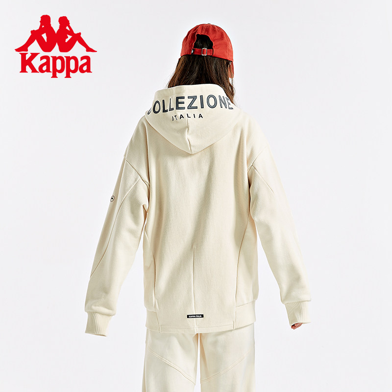 Kappa Capa Cardiovert Hooded Sweatshirt Woman Sports Fall Shoulder Sweater Alphabet Jacket Casual Loose Blouse