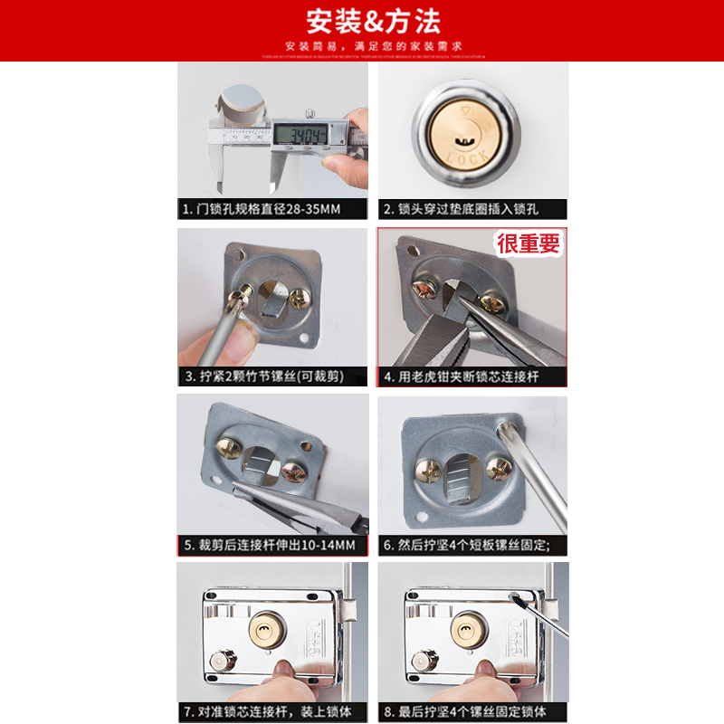 Old-style lock core household general anti-theft door lock copper core lock large accessories outdoor gate iron door outdoor
