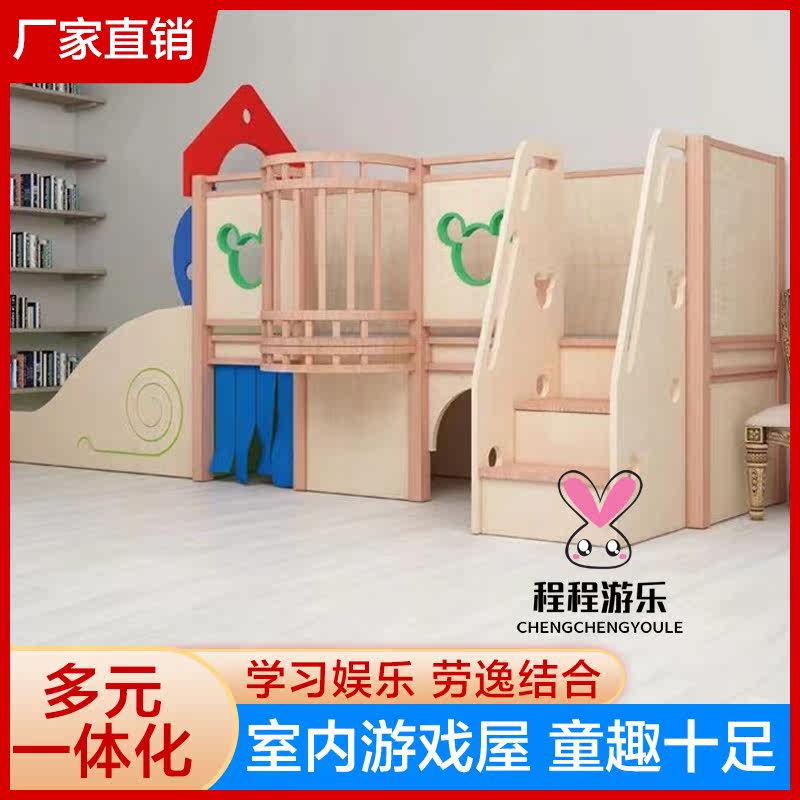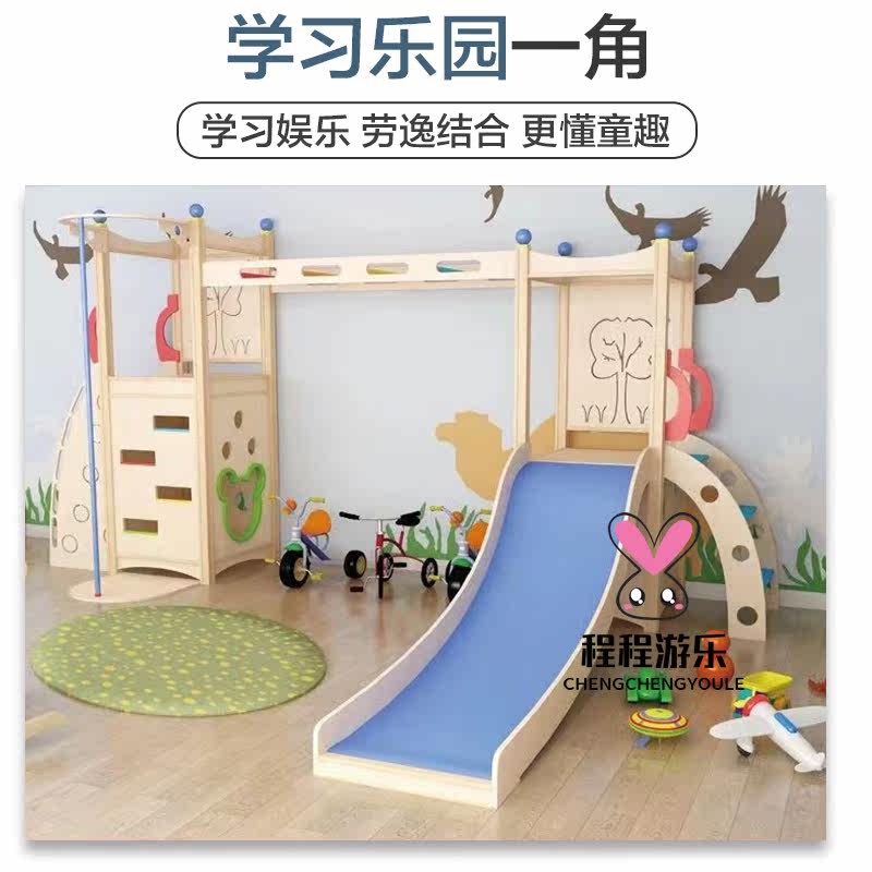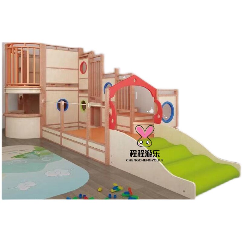 Early Education Center indoor large wooden slide children's area corner cabin cabin sensory training equipment climbing rack