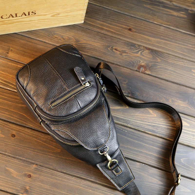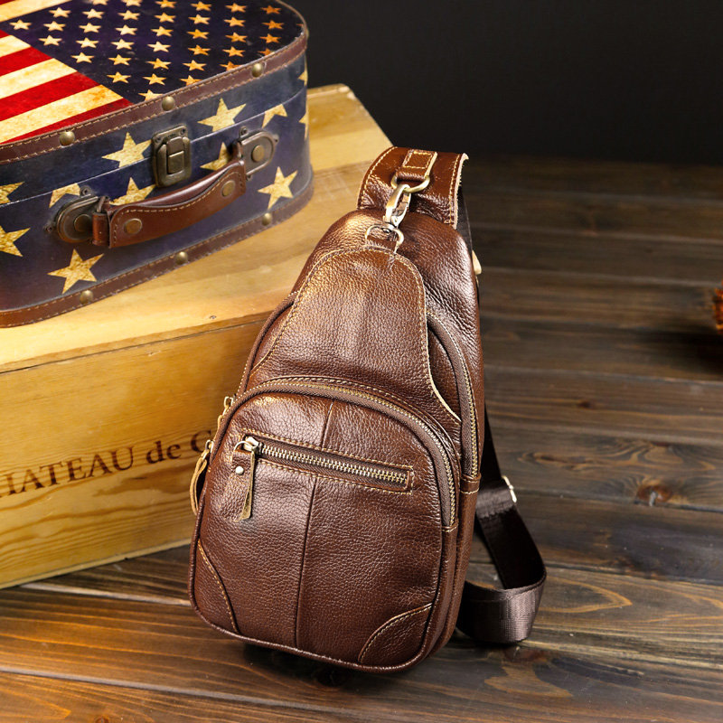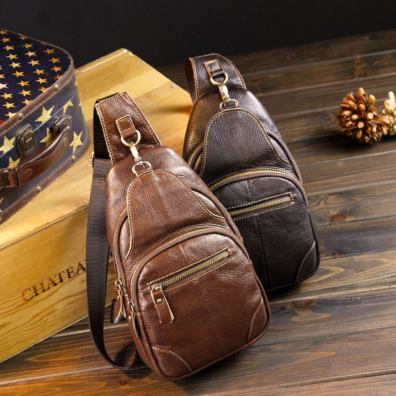 Hong Kong duty-free men's chest bag new waterproof chest front single shoulder bag Bull Leather Casual Fashion Texture Slanted Satchel