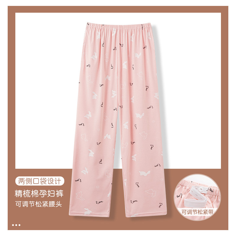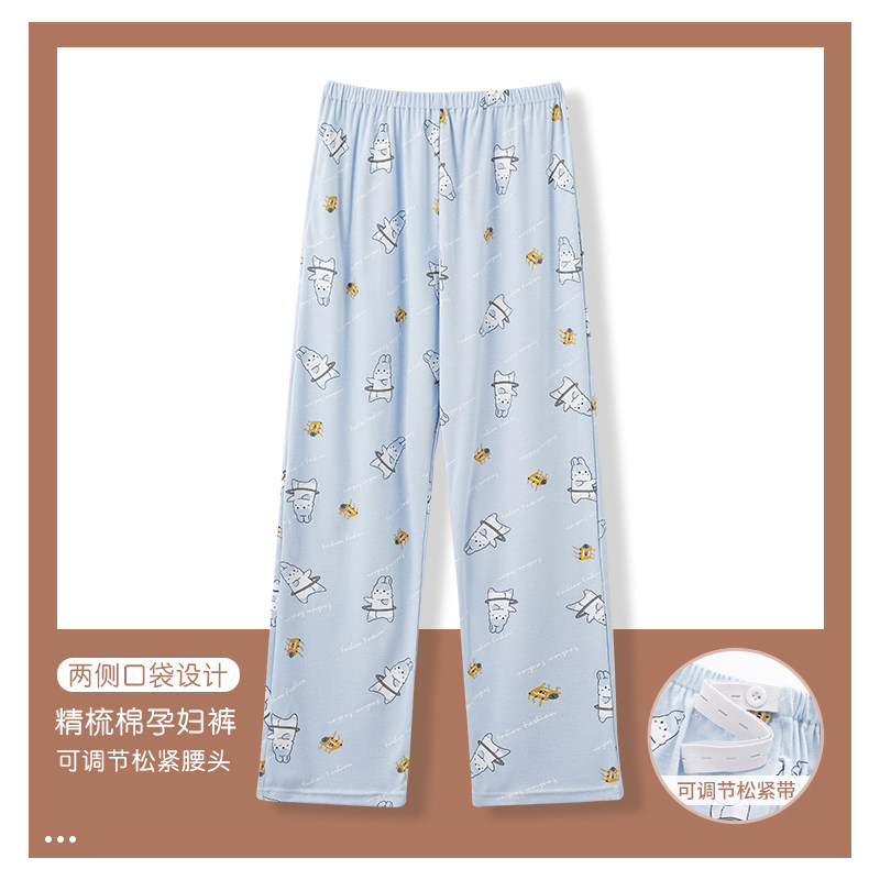 Pregnant women's pajamas pure cotton spring and autumn models adjustable pregnancy pants large size maternal family pants can be worn