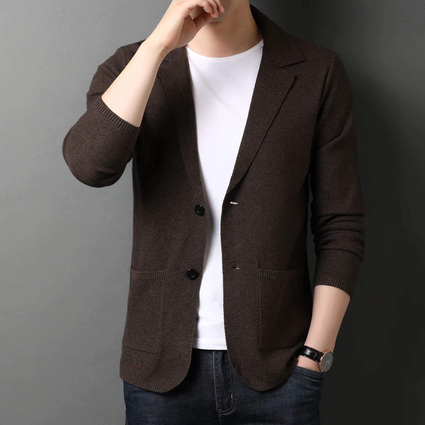 Brand Men's Clothing New Knitted Jacket Men's Cardiovert Spring Clothing Young Men's Suits Collar Jacket Male Thin blouses