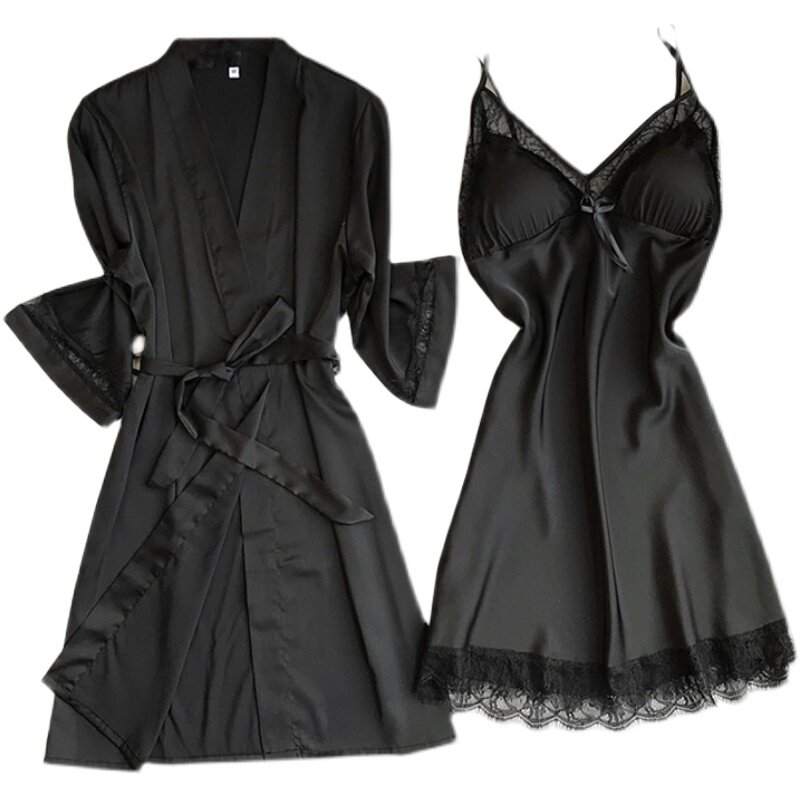 Lace V neckline pyjamas 2022 new sexy ice silk pink sleeping dress Two sets of sling chest cushion stay-at-home suit