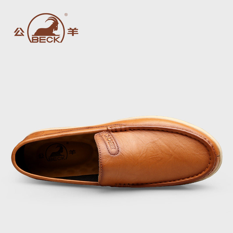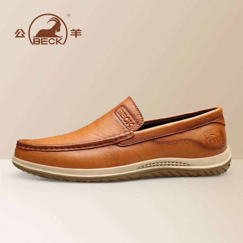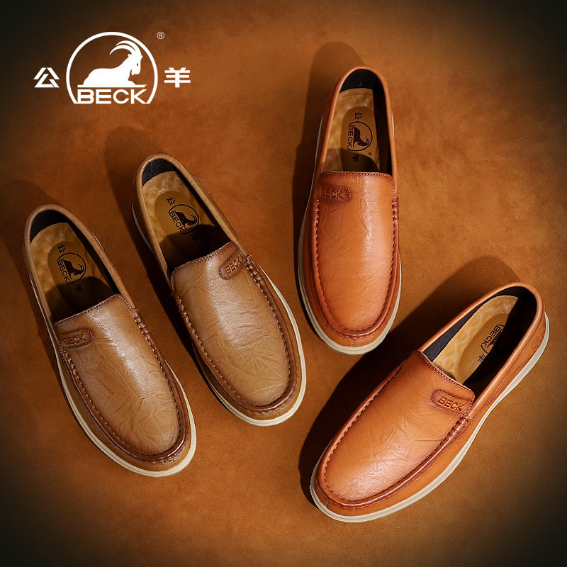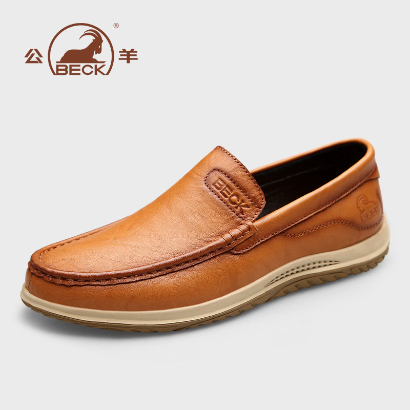 Ram men's leather shoes leather autumn soft bottom brown men's casual leather toe top layer cowhide lazy dad shoes high-end