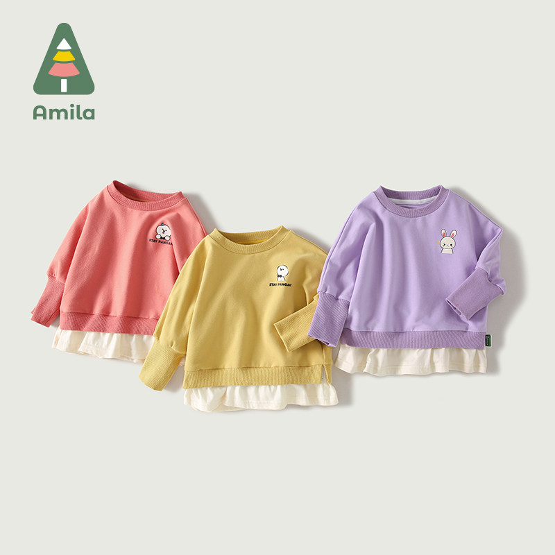 Amila, Mummy Girl clothing 2022 Spring autumn season new girl's thick T-shirt cotton T-shirt skirt blouse baby foreign pie baby