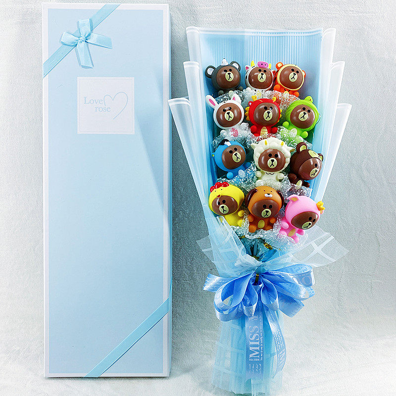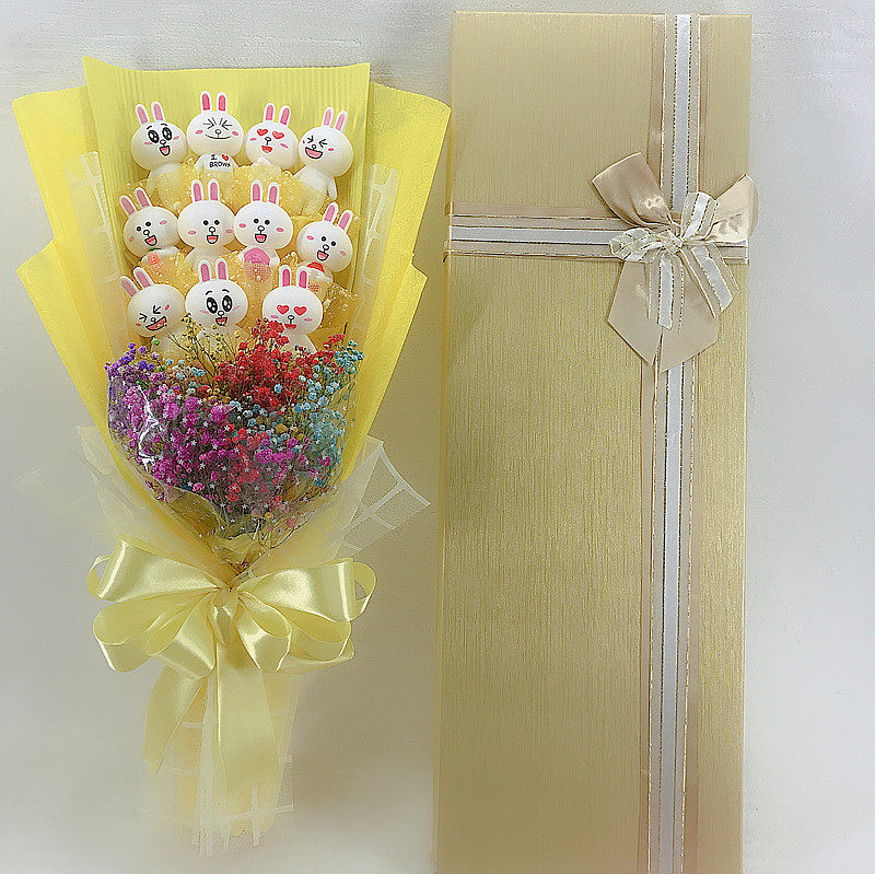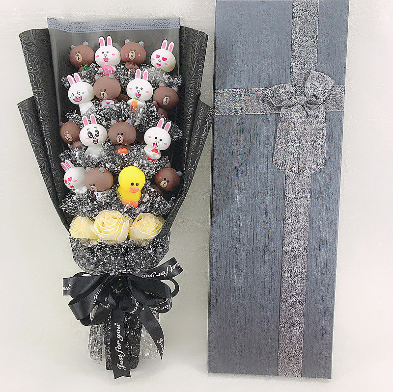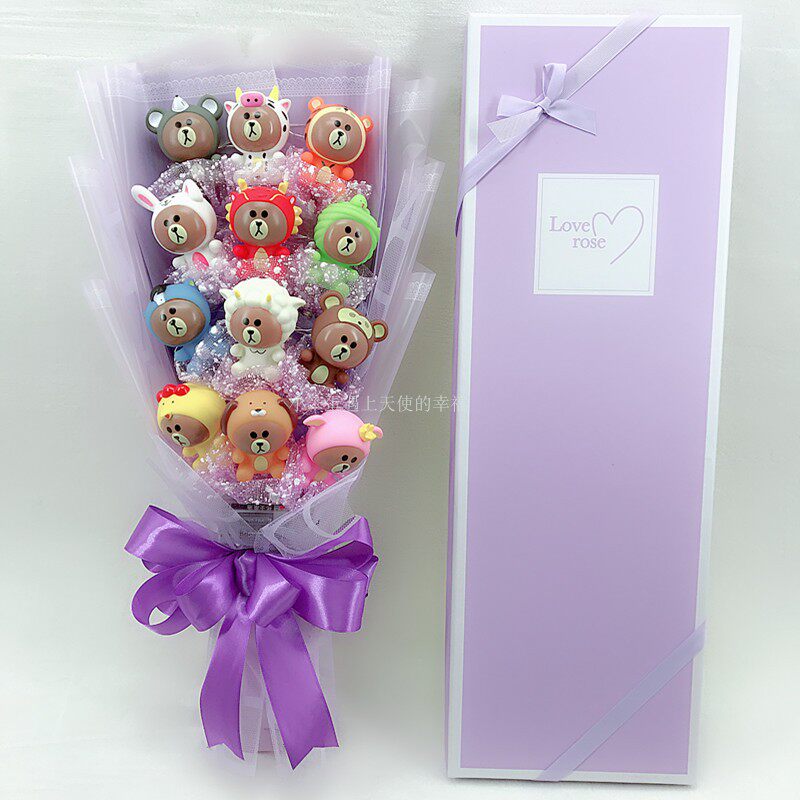 National Day little brown bear cute rabbit cartoon three-dimensional doll bouquet flower soap flower starry birthday creative gift
