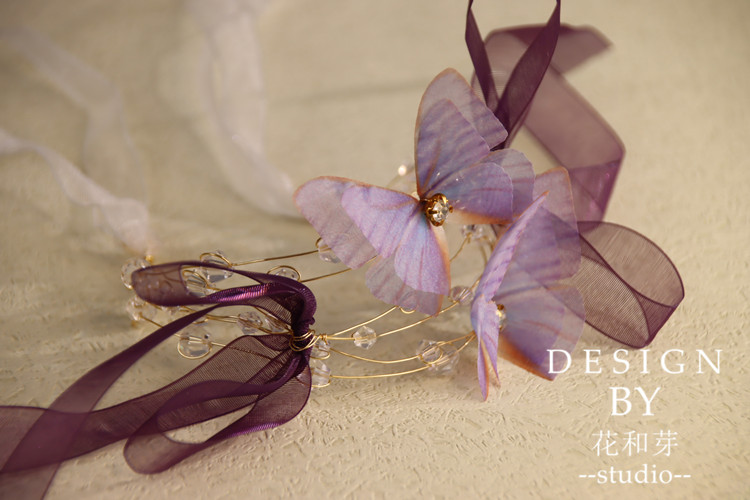 Zixia Fairy Original Beautiful Yarn Butterfly Crystal Weaving Activity Bracelet Bride Bridesmaid Wedding Dress Wrist Flower