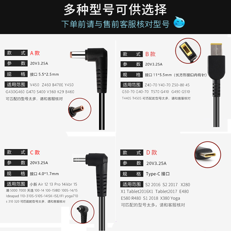 100 tripod applicable Lenovo little new Air13 14 15pro tide 5000 7000 laptop charger yoga310s 510s 710 power supply