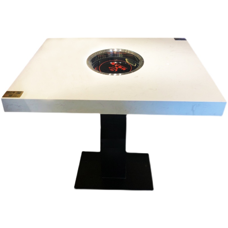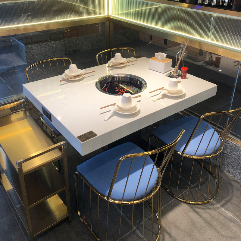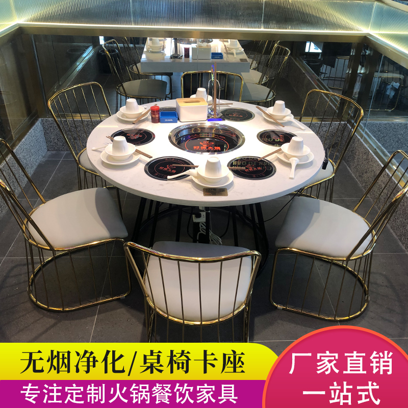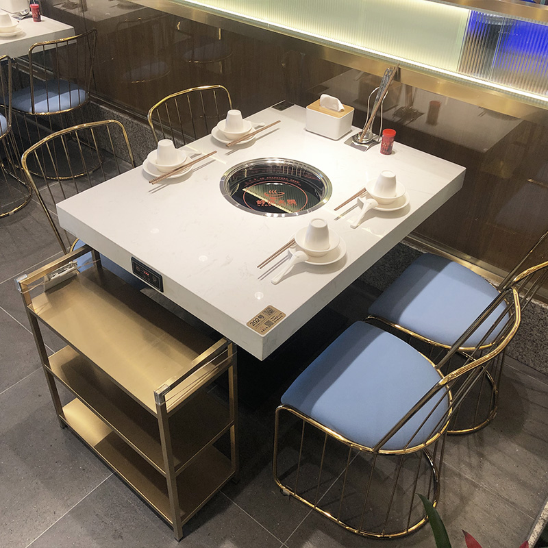 Modern minimalist marble hotpot table induction cookery integrated smoke-free commercial roundtable toasting one-one-pot table and chairs