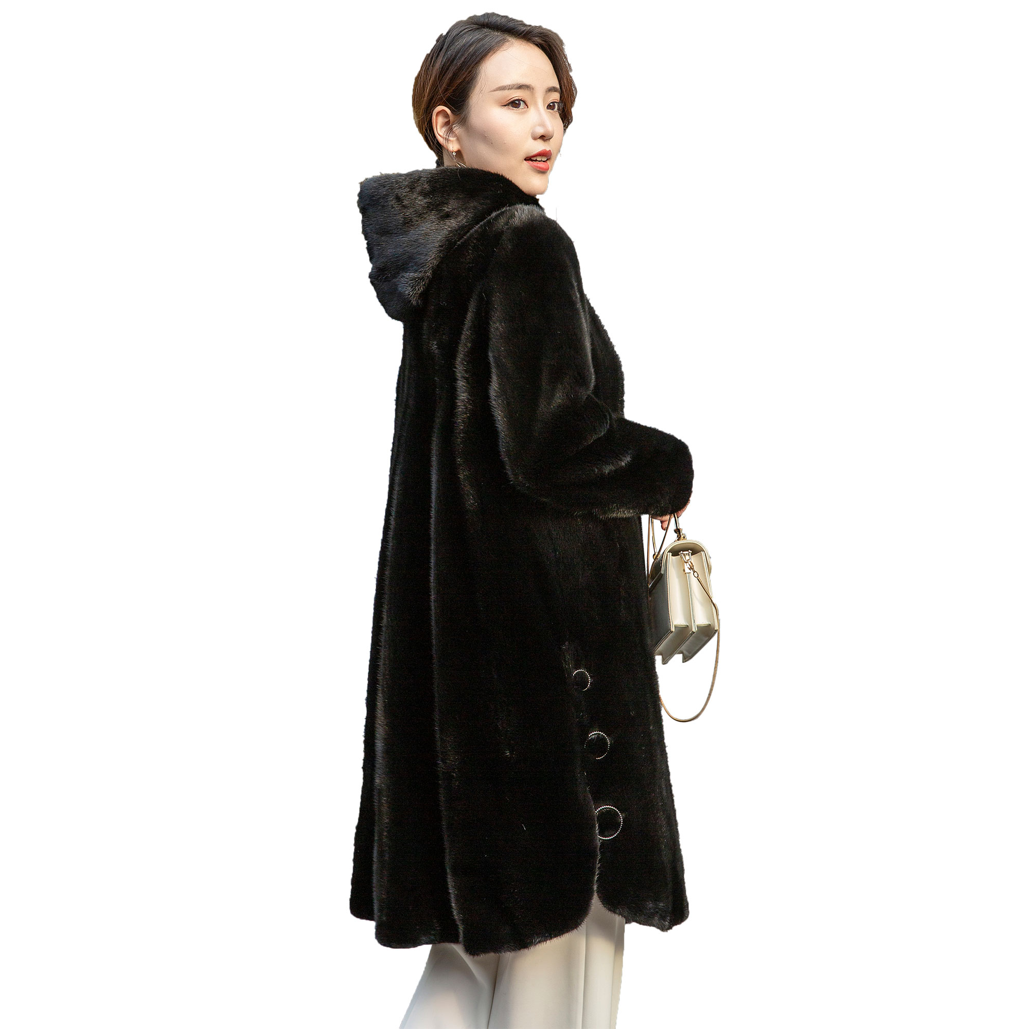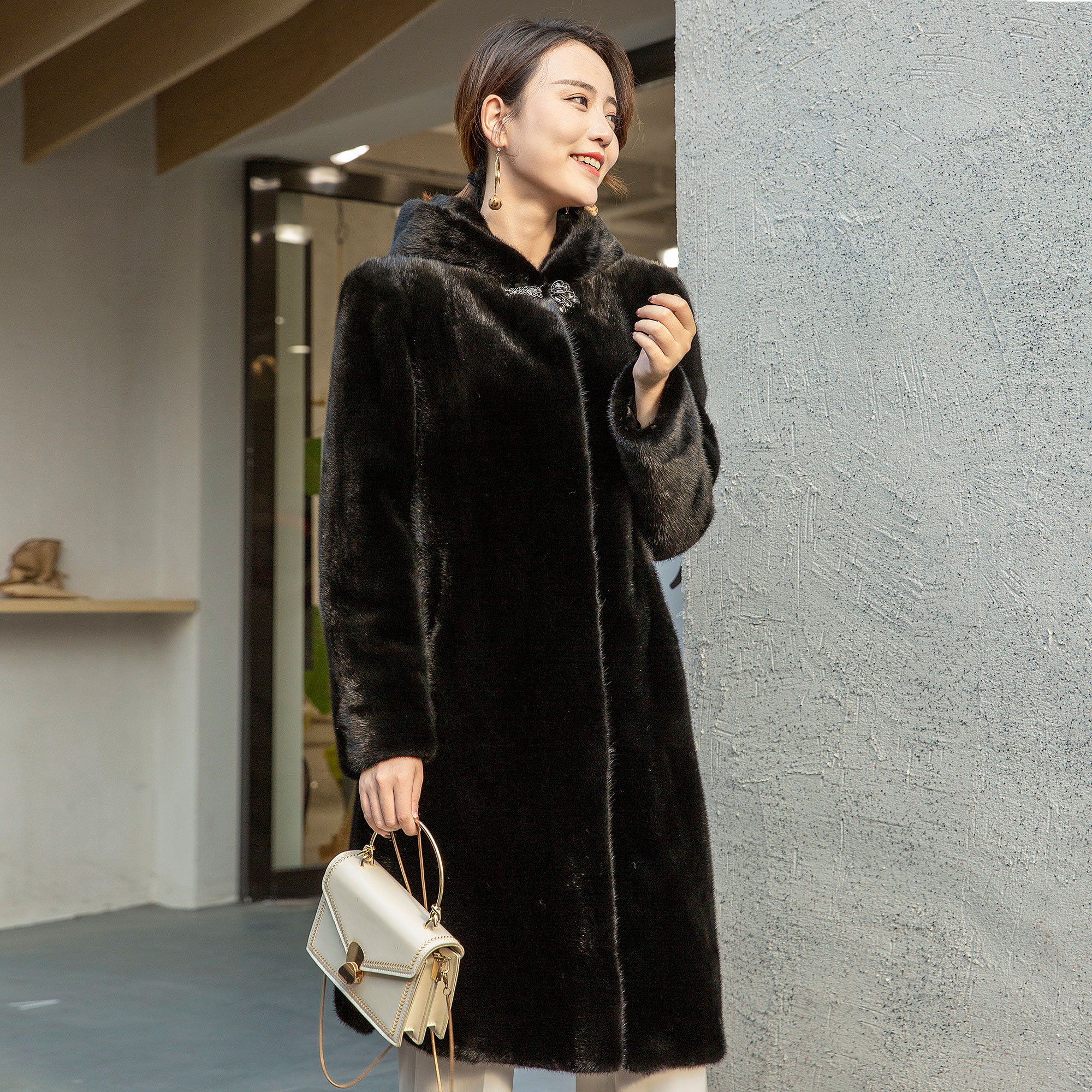 2022 season new mink fur coat women's whole mink velvet mink fur hooded coat young mid-length