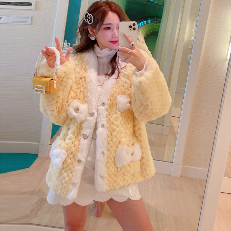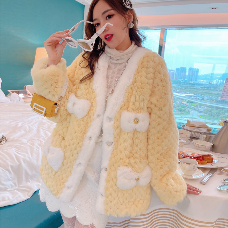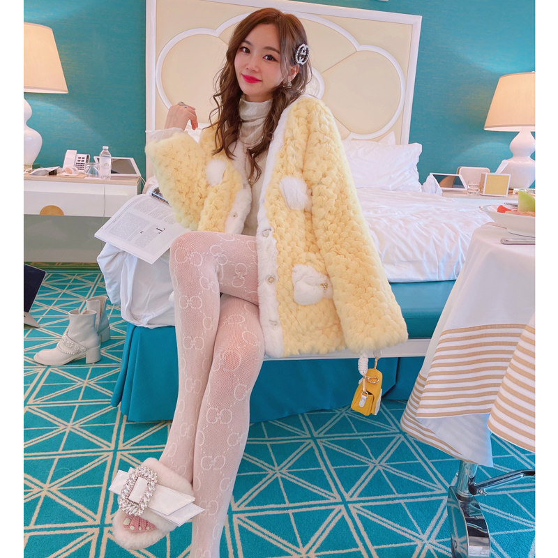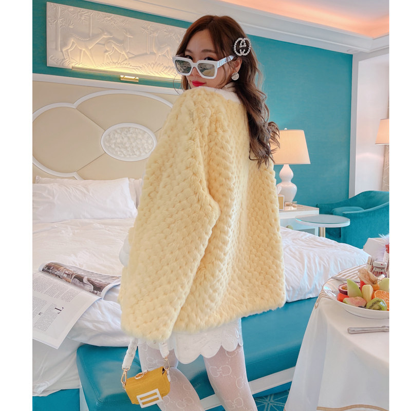 Miss Luxury "Heavy Industry Cell" 2 Yellow High-end Rex Otter Rabbit Fur Cover Woman Short 2021