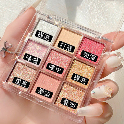 Net Red Nine Color Eye Shadow Disc Ins Ultra Fire Flash Pink Pearlescent Small Disc Portable Student Affordable Earth Color Niche Brand