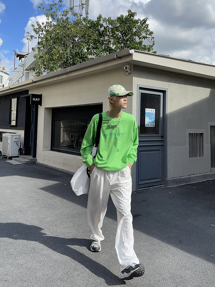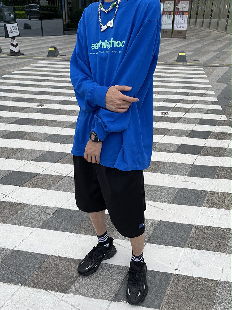EAHO earthlinghoo original color basic Japanese and Korean street all-match blue orange green long-sleeved T-shirt men and women