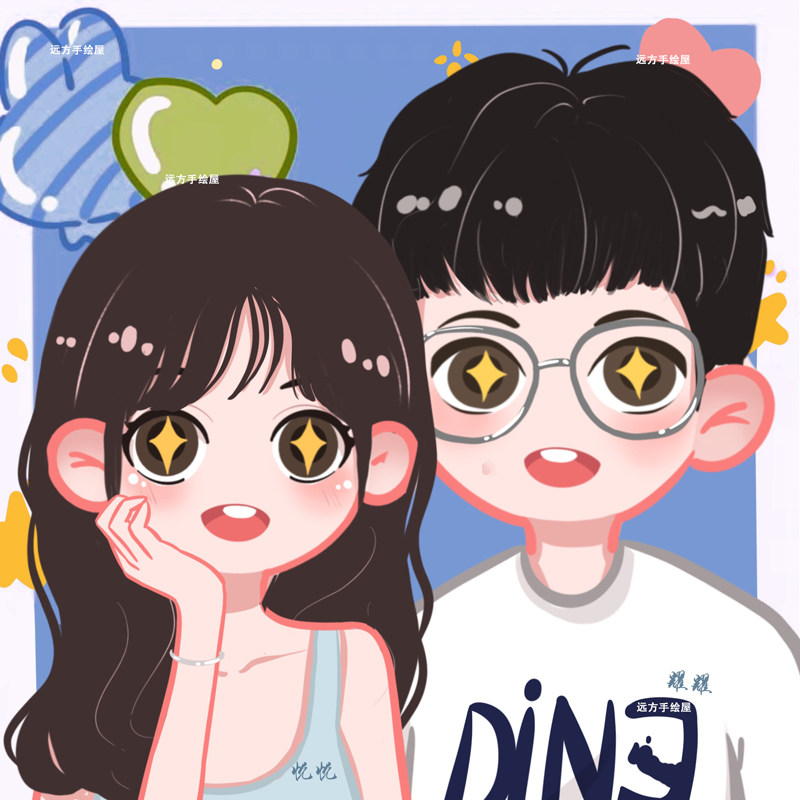 Q Edition Cartoon Hand-painted Avatar About Draft Design Action Cartoon Live-action Photos Customized for Couple Gift Jane Pen Painting