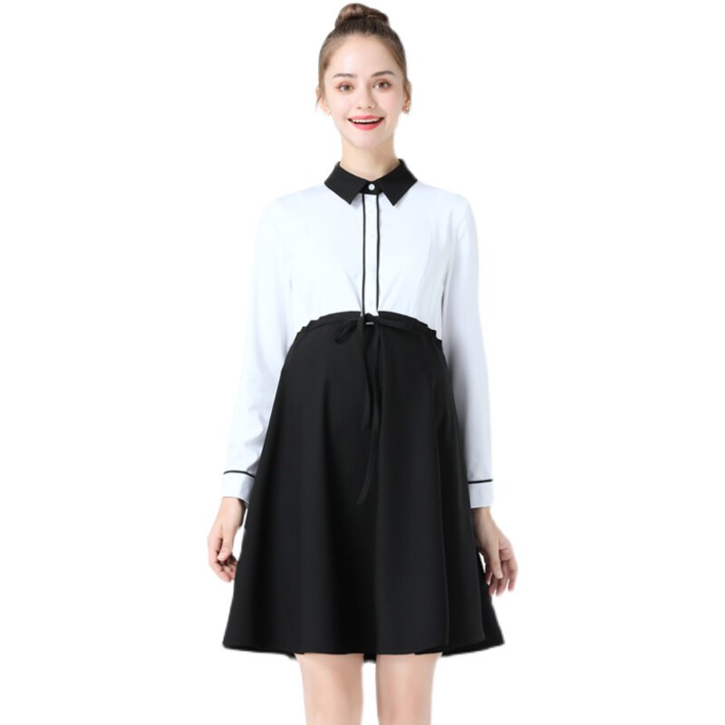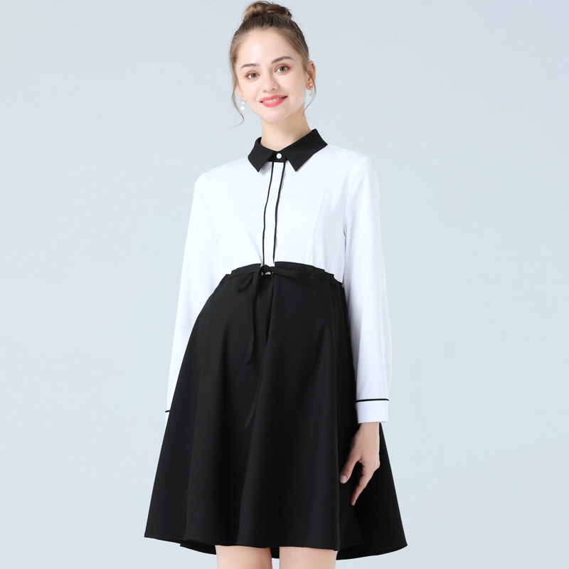 Maternity wear spring new long-sleeved maternity dress women's fashion professional tooling interview work mid-length skirt