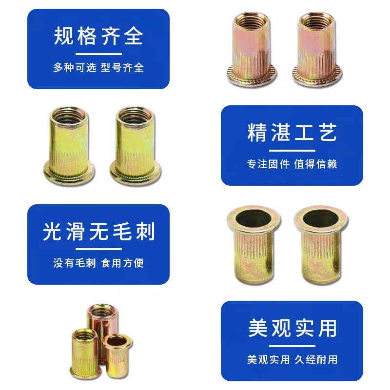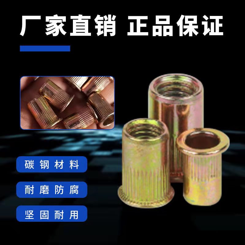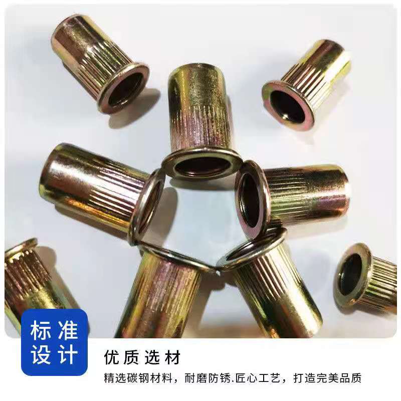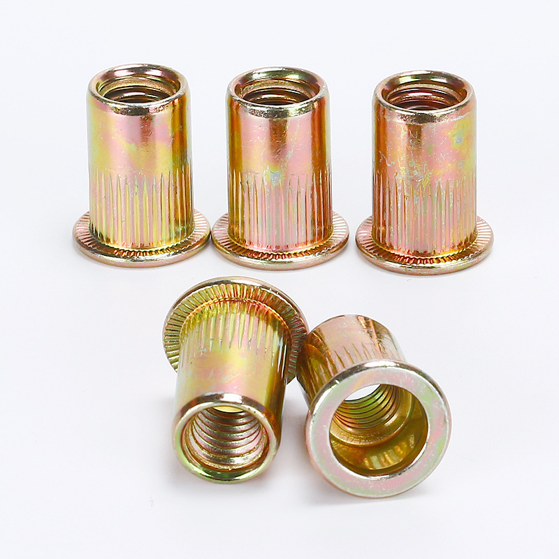 Flat Head Vertical Stripe Riveting Nut Pull Riveting Nut Iron Plated Color Zinc Large Side Knura Lahat Puct Flat Head Vertical Stripe Nut