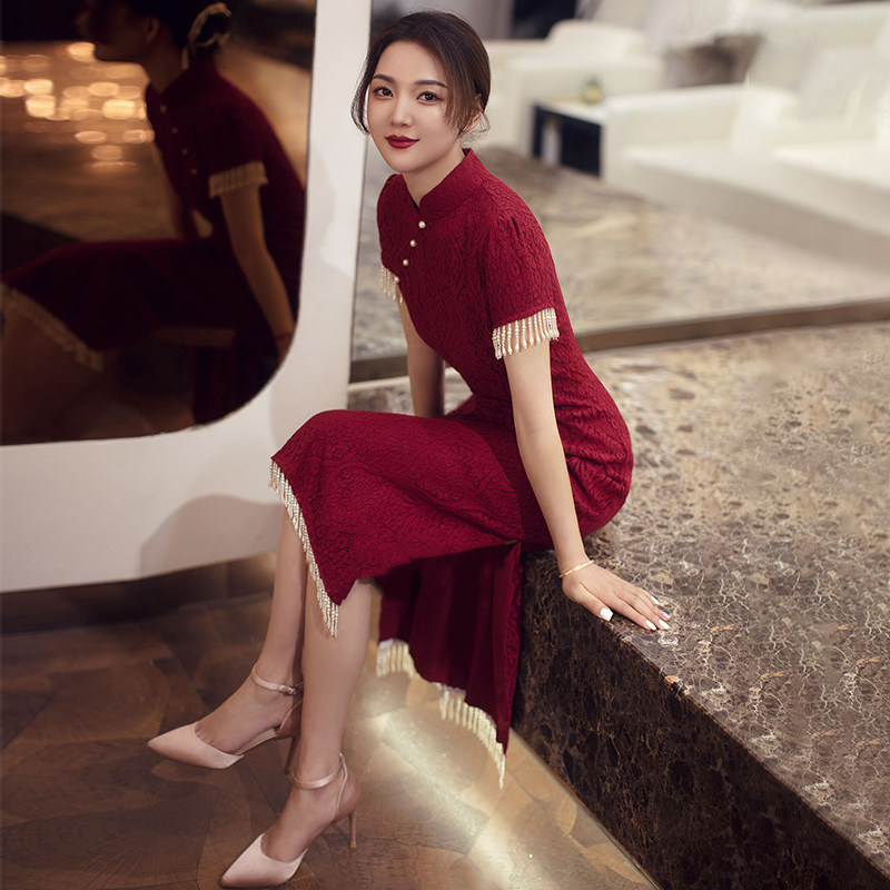 Chinese cheongsam toast dress bride 2022 new retro lace engagement back door dress female long version can be worn at ordinary times